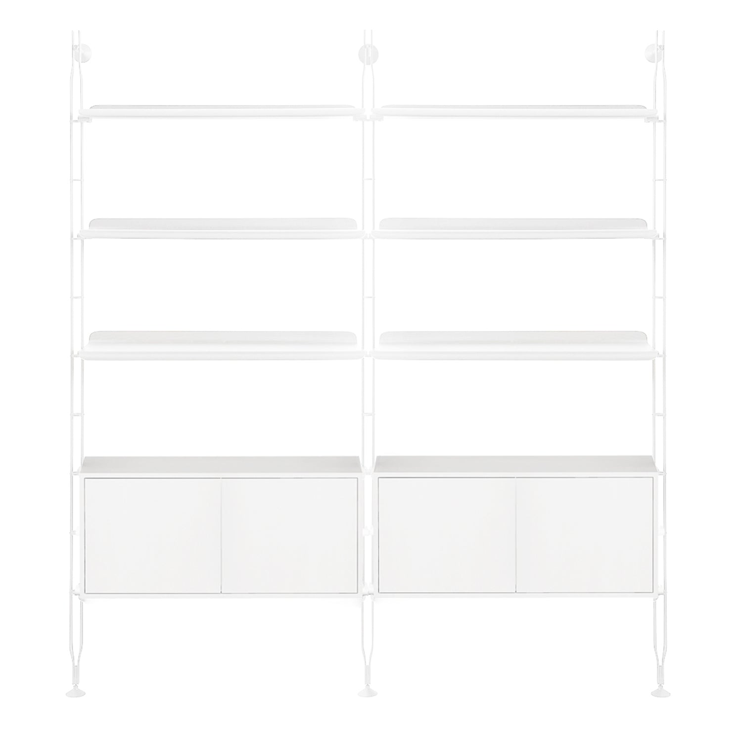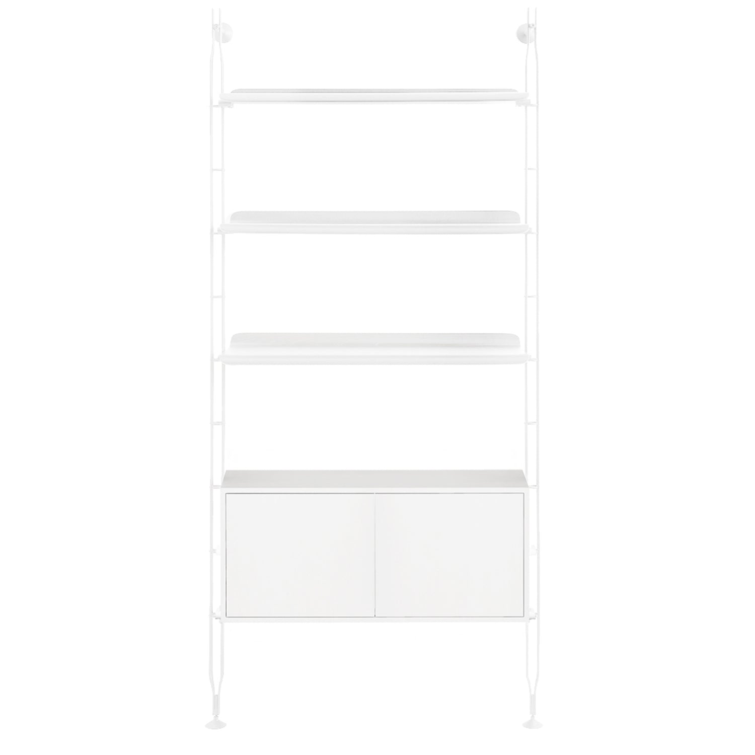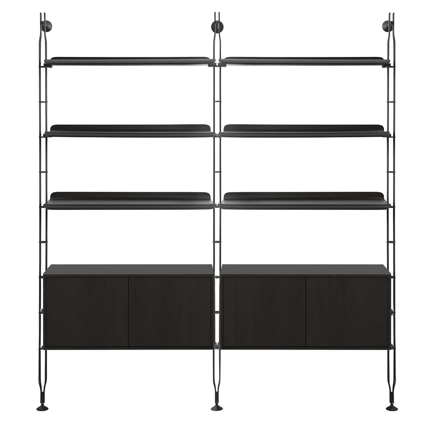 Designed by Philippe Starck for , the Adam Wood shelving unit is characterised by a mid-century modern aesthetic of clean lines and natural materials. A series of wooden shelves with finely curved edges are paired with integrated cupboard storage for neatly storing away all the essentials. Appearing to float weightlessly within a streamlined steel frame structure which mounts to the wall via integrated fittings. Additional modules can be combined to create a larger storage and display unit, whilst the shelves can be fitted at various different heights within the wall-mounted frame. Available in three finishes, this modern shelving and storage unit is perfect for use as a bookshelf, combining display space with a media unit for a tv, record player and speakers.