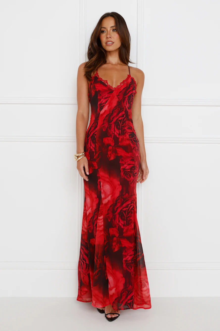 All the attention will be on you, lovely. Be seen in the Aminah Maxi Dress, featuring a lace trim, an open back, and a floral print. Style with heels!
