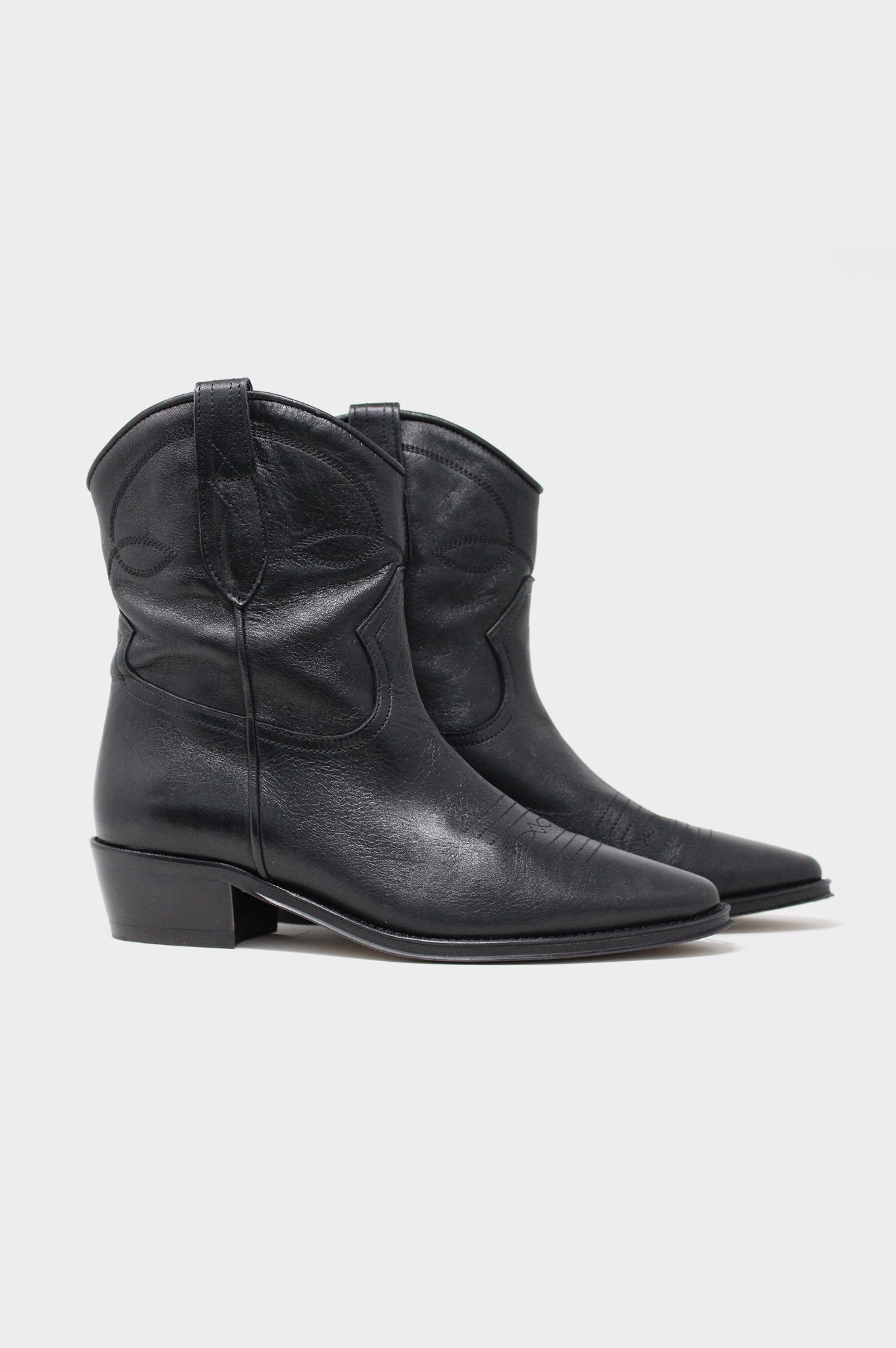 Our Camilla Short Boots by Spanish brand Alpe are back featuring in leather with cow-boy inspired embroidery, on a block wooden heel and rounded toe. Finished with a non-slip sole and side tabs for easy pull-on style.