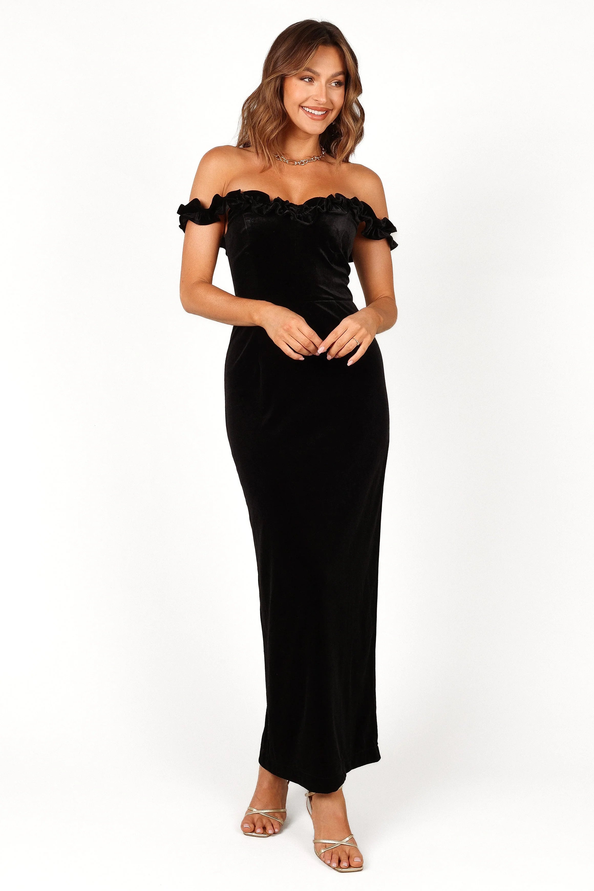 Home Celeste Off Shoulder Velvet Maxi Dress - Black