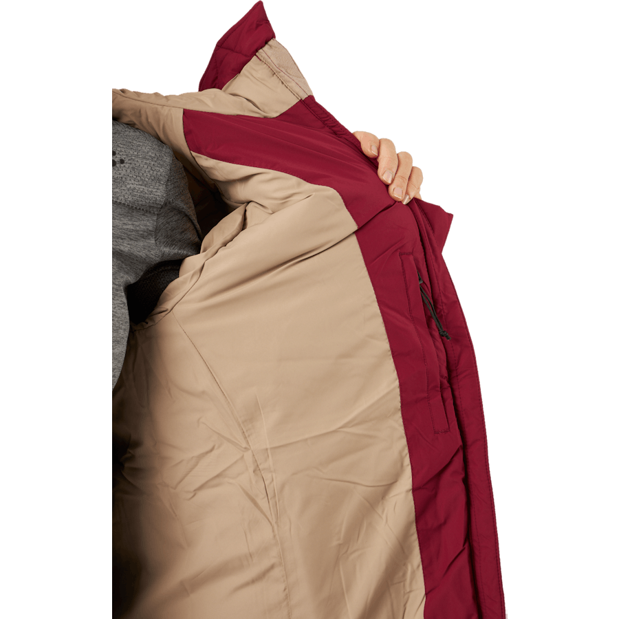 Sandra är en modern, vadderad pufferparkas, gjord av ett vattentätt tyg. En parkas gjord för vardagsbruk under höst- och vintersäsongen. Den har reflekterande tejp på ärmslut, när de är uppvikta. Dekorsömmar på huvans kant. Isoleringen är gjord av 100 % återvunna fibrer och fodret har färgats med Solution Dye, en färgteknik som sparar upp till 80 % vatten jämfört med konventionellt färgat polyester/polyamidtyg. PFC-fri vattenavvisande finish.