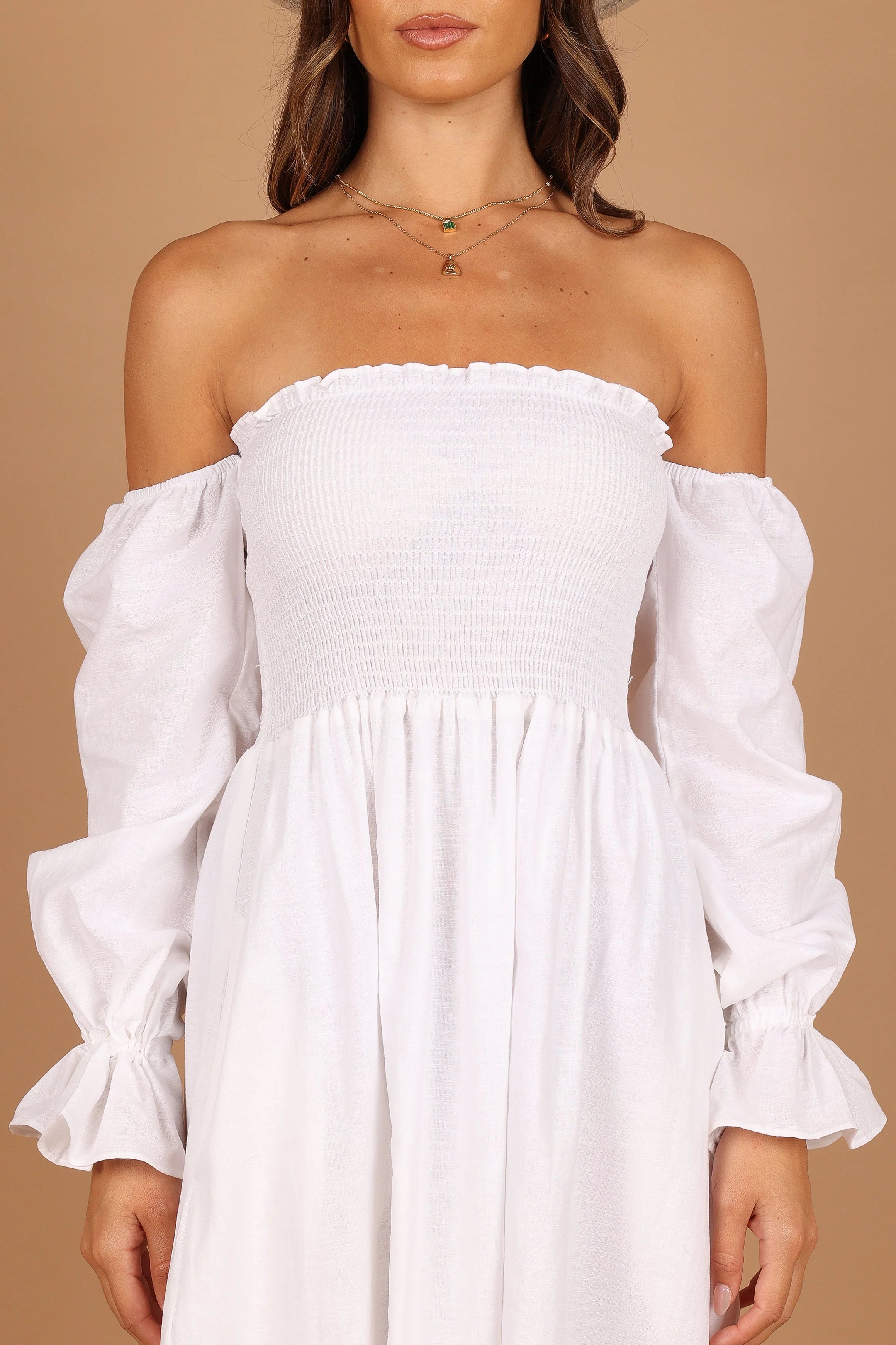 Home Domenica Shirred Long Sleeve Midi Dress - White