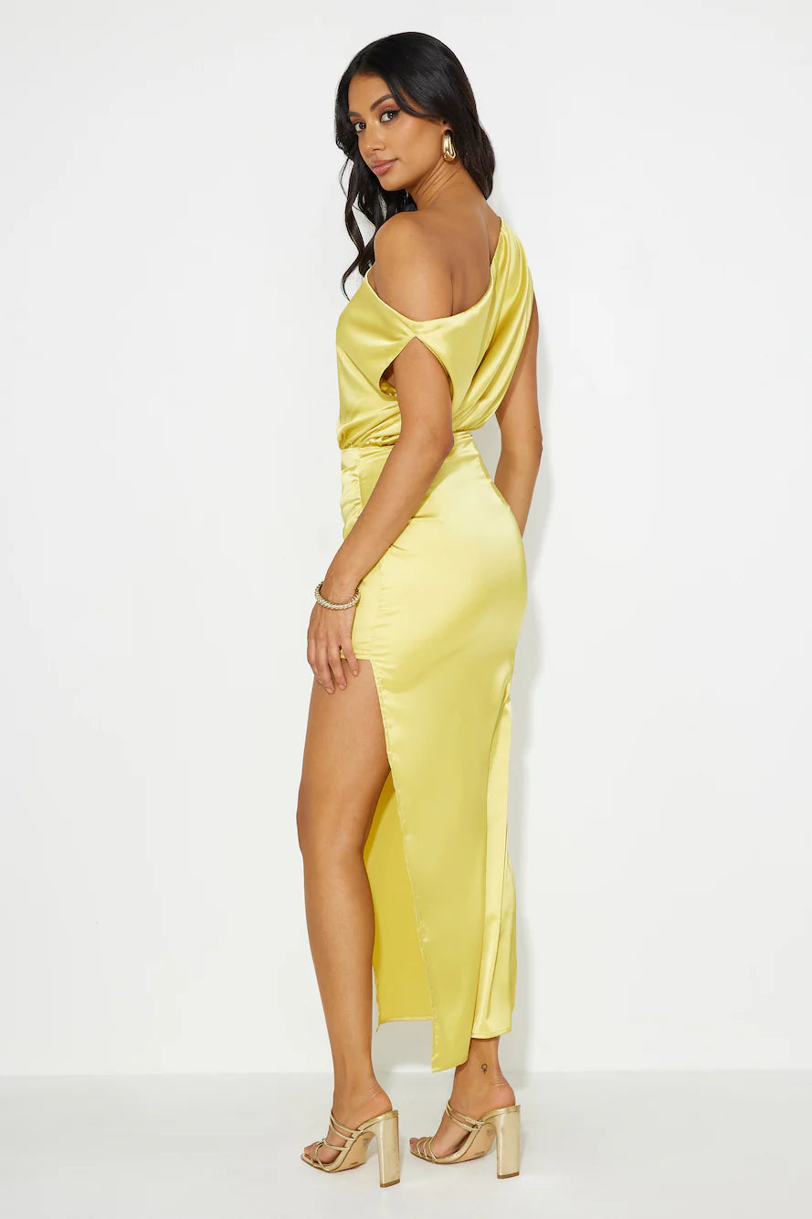 You'll fall in love with this luxe look. The Elite Girl Off Shoulder Satin Maxi Dress features a gorgeous satin silhouette with an off-the-shoulder design. Style with heels for a fancy event.