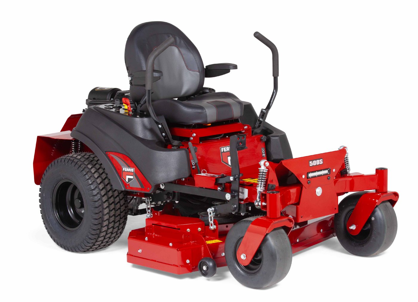 Der Ferris IS 500 überzeugt durch einen leistungsstarken B+S 2-Zylinder Motor, ein patentiertes Federungssystem und das Triple Mähwerk.