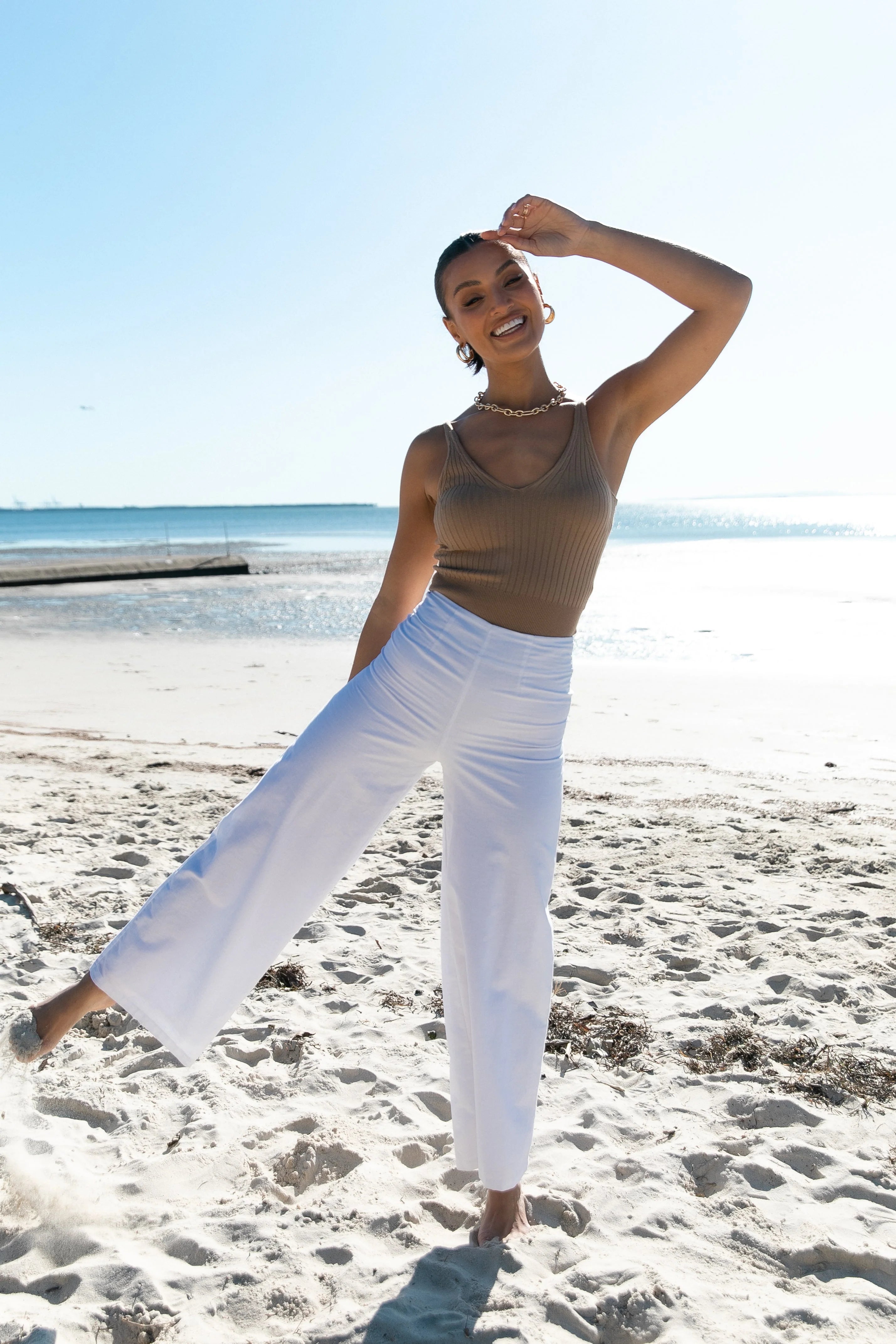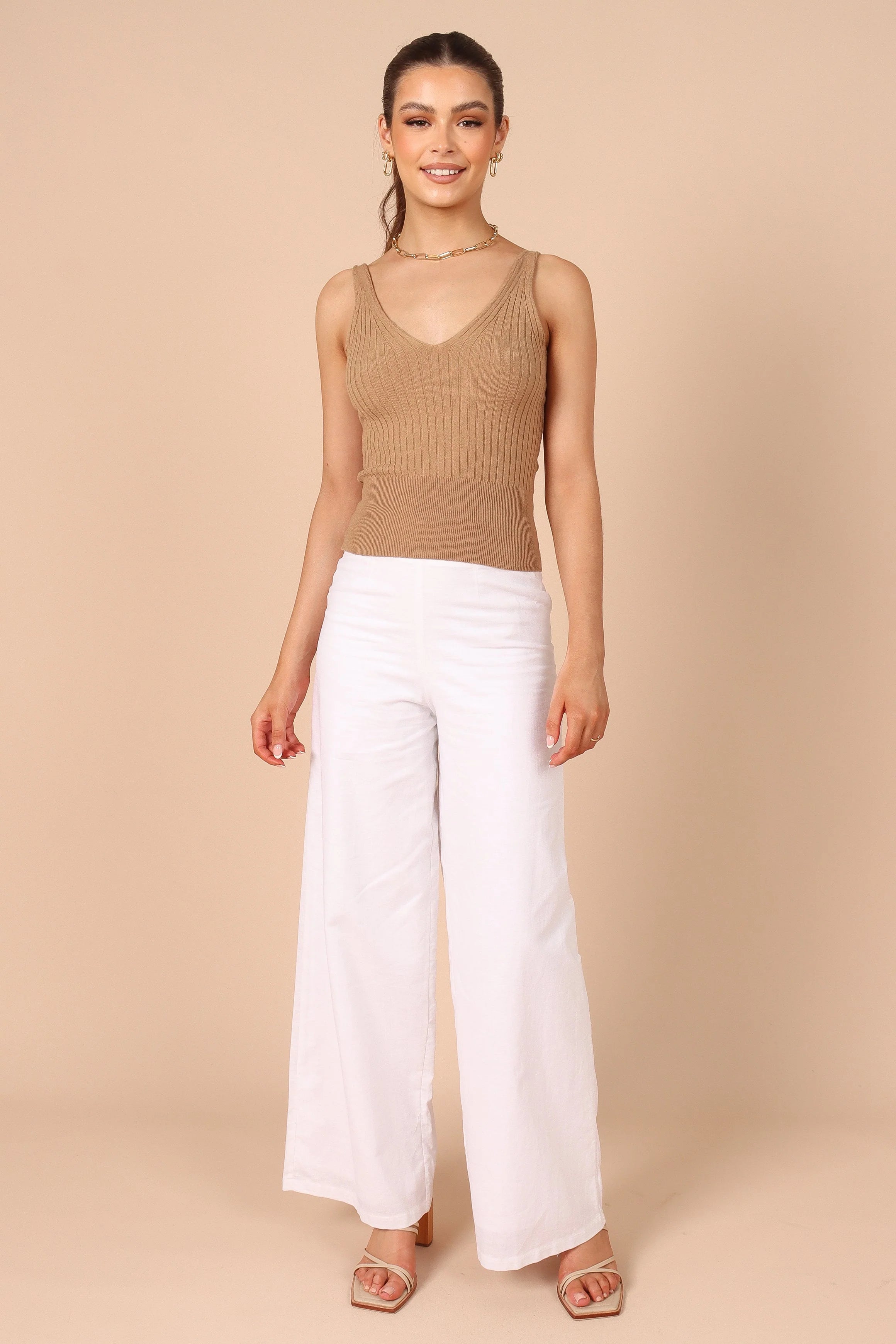 This knit tank top is the perfect way to add a feminine touch to your everyday wardrobe. Featuring a V-neckline and non adjustable straps, you'll feel comfortably supported throughout the day. The soft stretch ribbed knit will keep you looking stylish from morning 'til night!