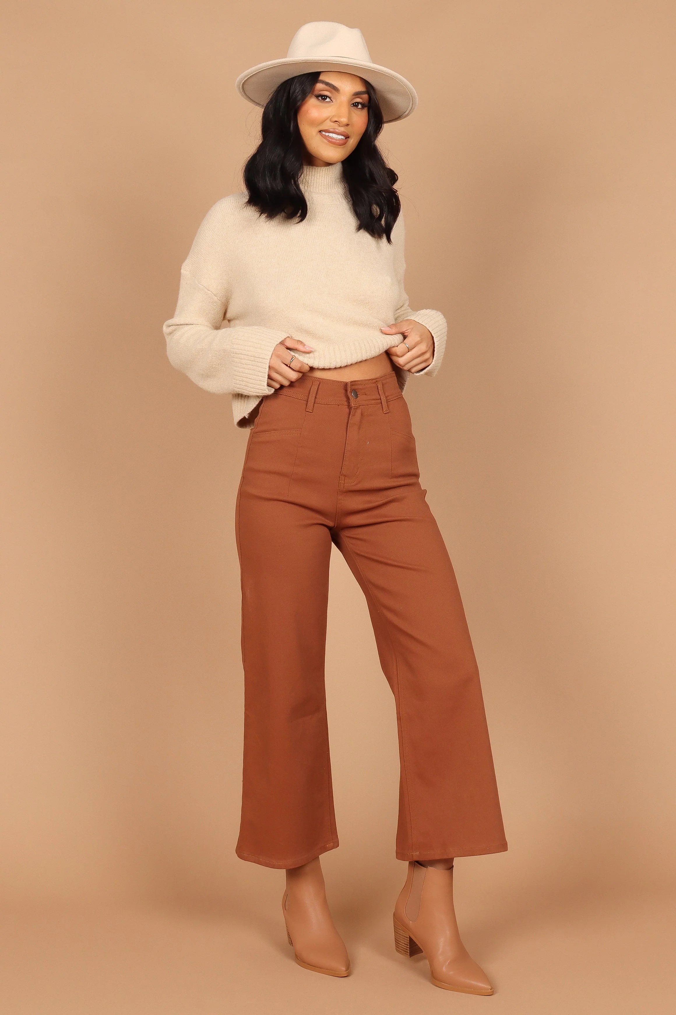 Georgette High Waisted Straight Leg Pants - Brown