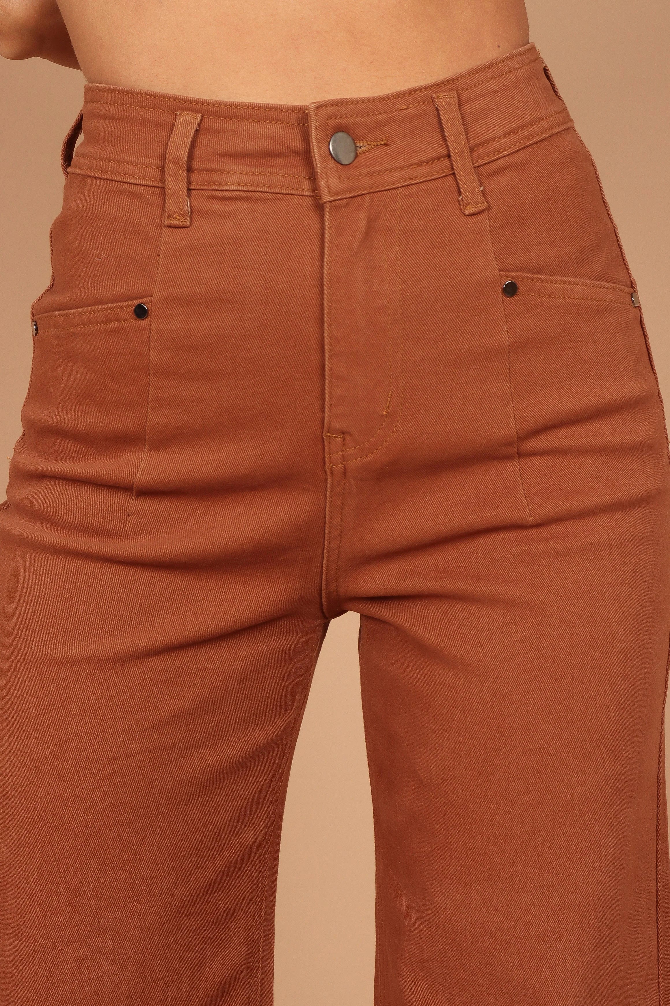 Home Georgette High Waisted Straight Leg Pants - Brown