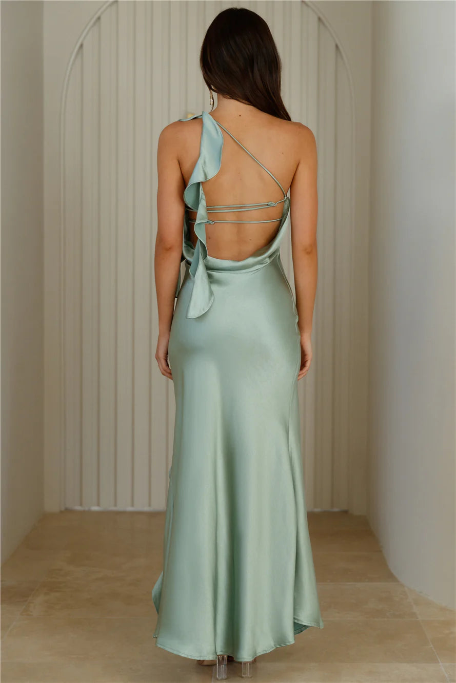 Channel your inner fashionista with the Glam Soir��e Satin One Shoulder Maxi Dress. Featuring gorgeous frill details and a silky silhouette. Style with heels to be the best-dressed gal at the party.