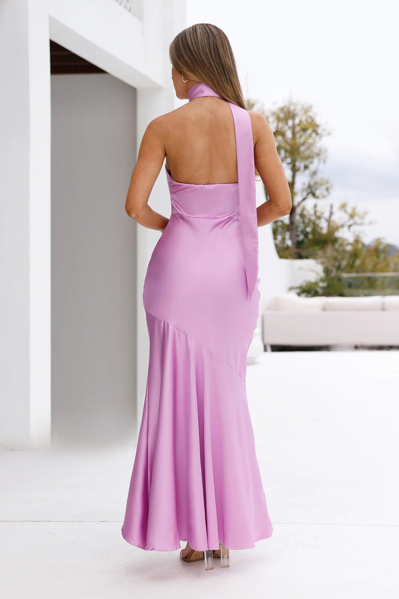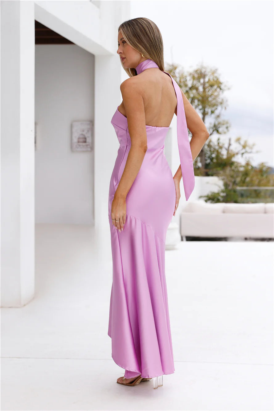 Channel your stylish side in the Graceful Influence Satin Halter Maxi Dress. Featuring a silky satin silhouette, a halterneck wrap design and a longer back hem for a sophisticated touch. Style with heels for a fancy event.
