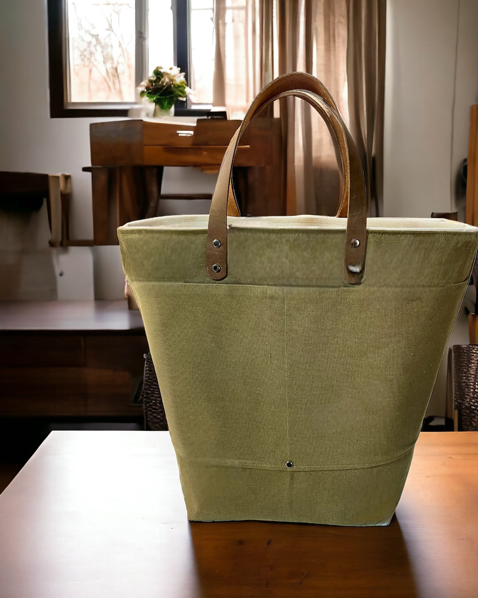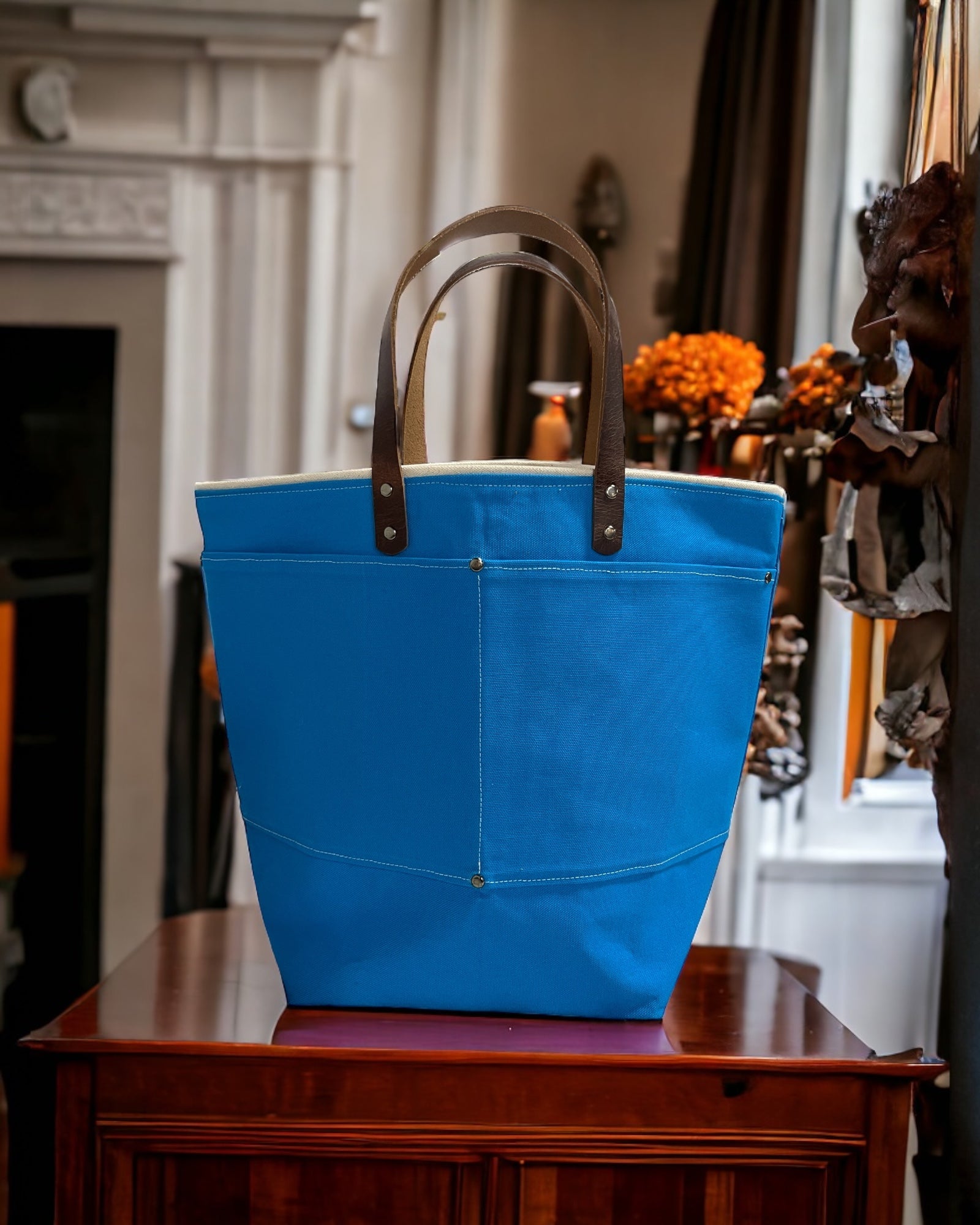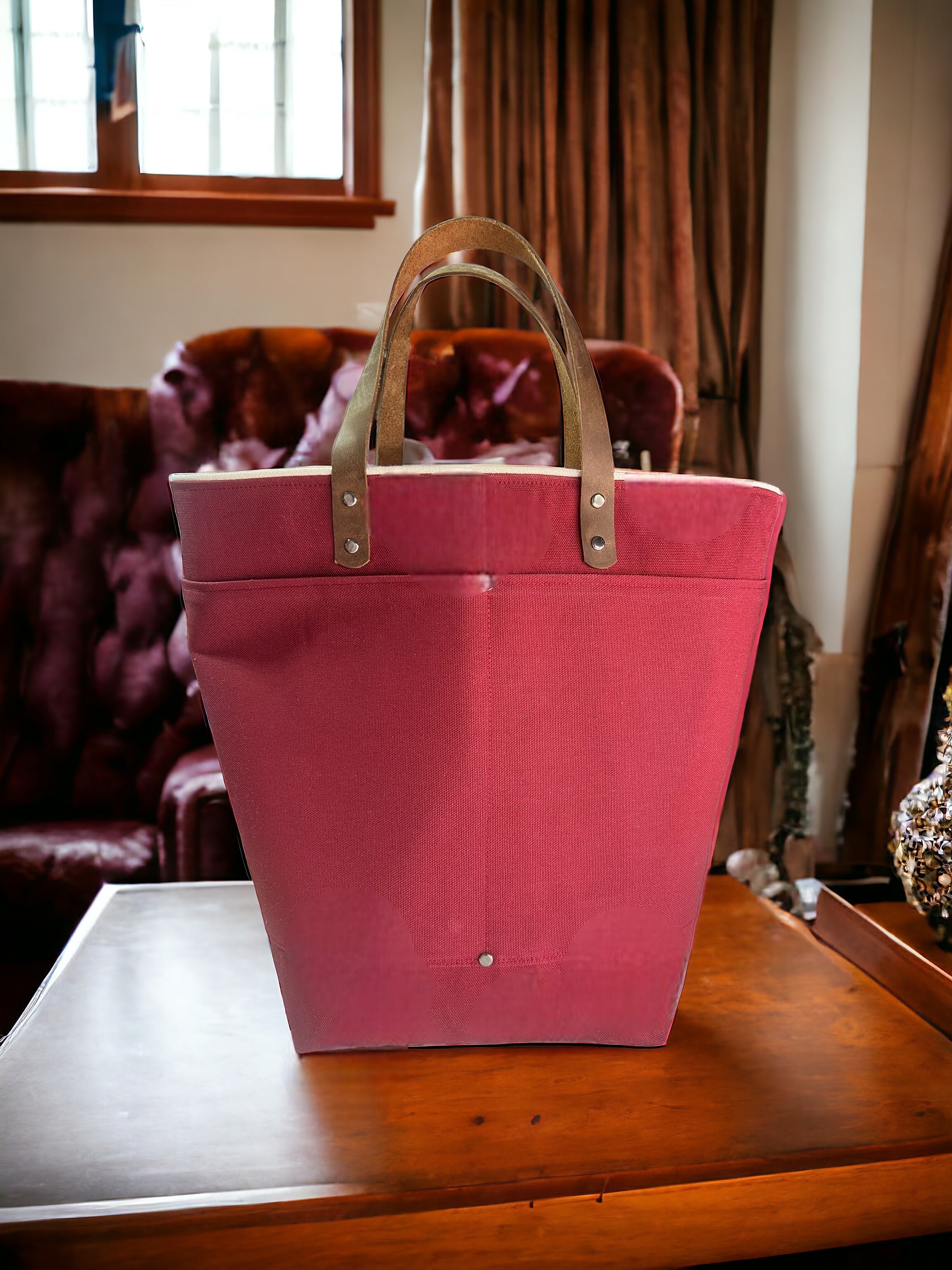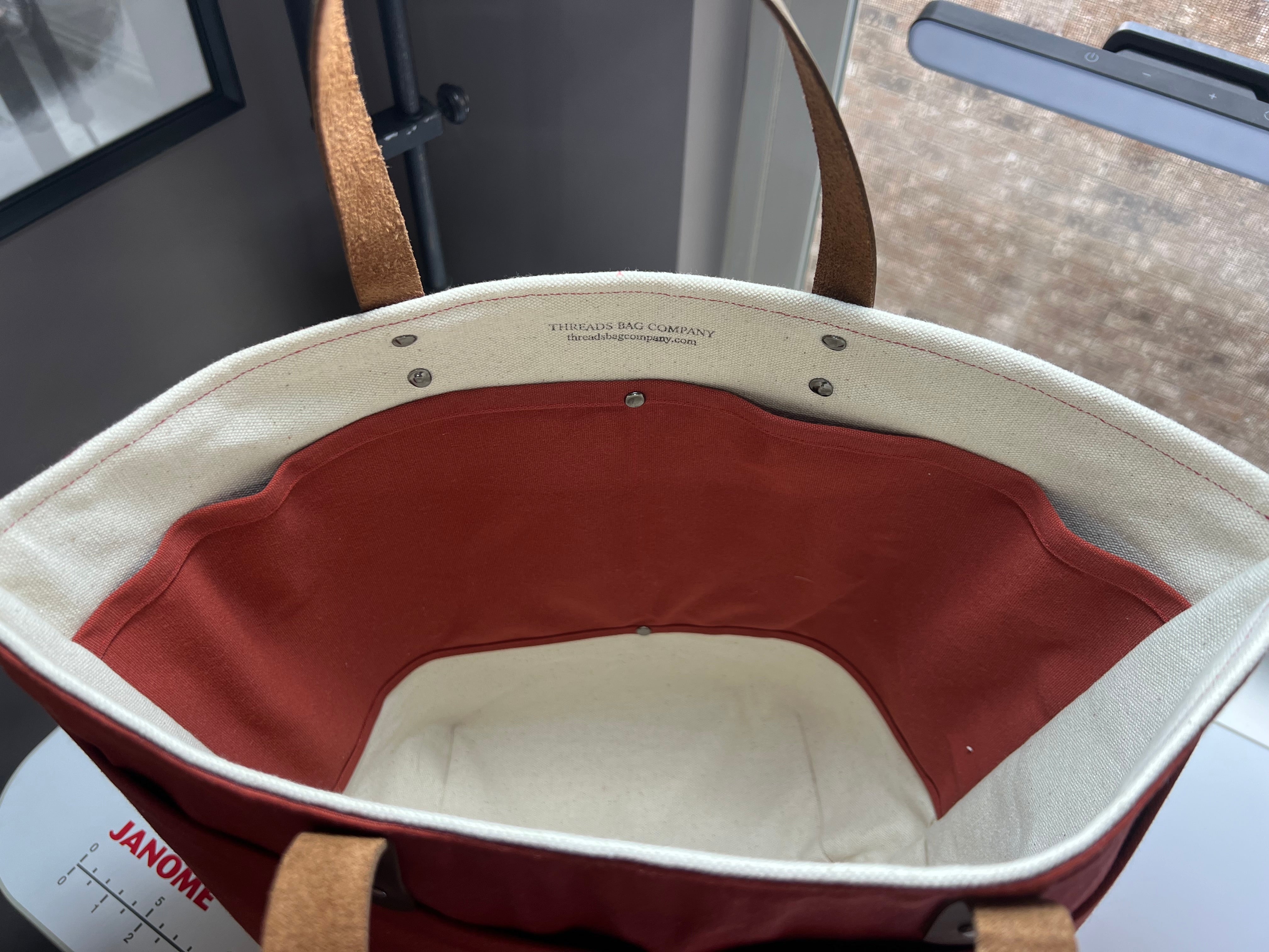 The Gussie bag is designed to effortlessly fit a sweater or large shawl project, making it a practical choice for any crafting enthusiast. With sturdy construction and supportive leather handles, it can also serve as an everyday bag for those who are always on the go. Plus, its practical design includes 2 interior pockets and ample space to store your notions, phone, and iPad without compromising its structure. This bag is the perfect balance of function and style, measuring 14" tall, 16.5" wide at the top, 9" wide at the bottom. The 8.5" leather handles add the perfect touch of elegance to this on-the-go friendly bag.