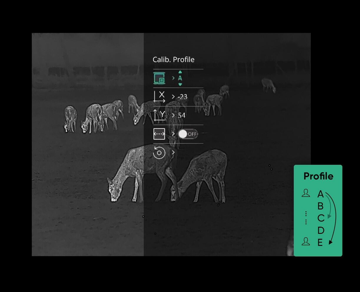 Høy bildekvalitet, vann- og støvtett (IP67), svært støtbestandig og fungerer imponerende i dårlig vær. Innebygget minne med 16 GB lagringskapasitet. Picture-in-Picture funksjon. Velg mellom 5 ulike retikler og 3 ulike farger. Clip-on kan også bygges om eller den kan brukes som en håndholdt spotter.