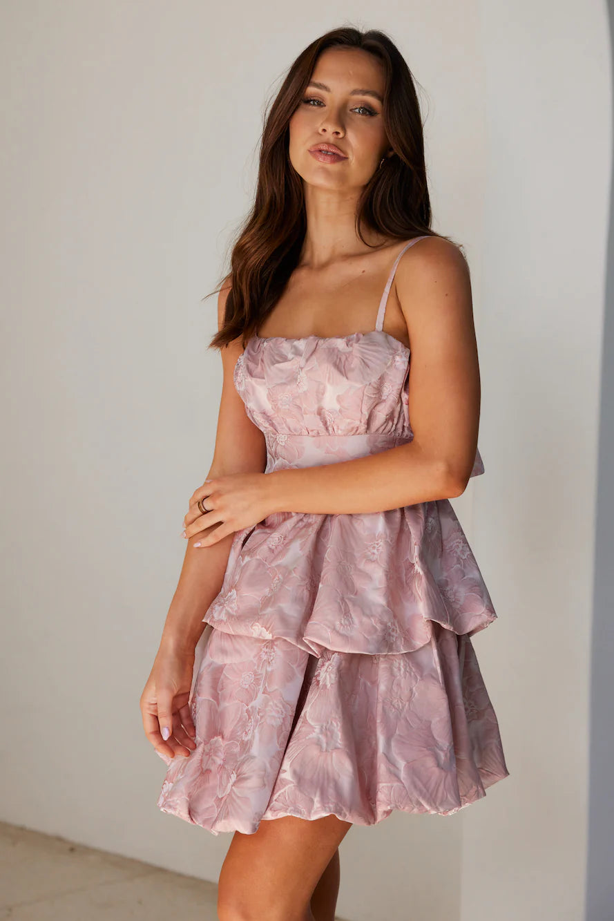 We're completely in love with the Jasmine Blooms Mini Dress. Featuring a tiered bubble hem, a floral print and a tie-up back. Style with heels for a romantic 'fit.