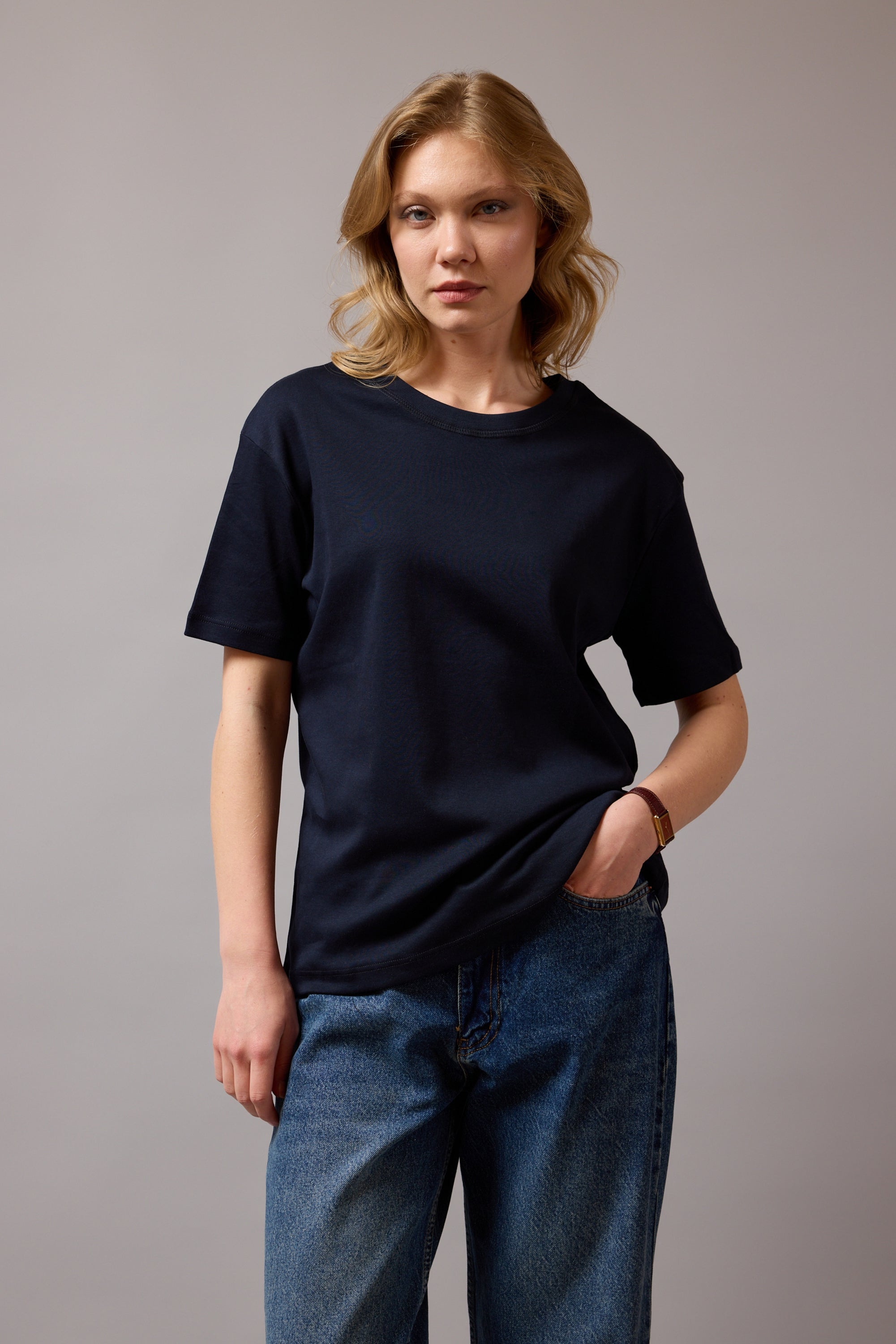Kısa kollu ve bisiklet yakalı detaylarıyla günlük pamuklu basiclerinin vazgeçilmezi olacak olan t-shirtler, konforlu kesimleriyle bedenini sarar. Fitilli dokuya sahip pamuklu topları, minimal tasarımları ve özgün renkleriyle eteklerle ve jean pantolonlarla kombinlenebilir.