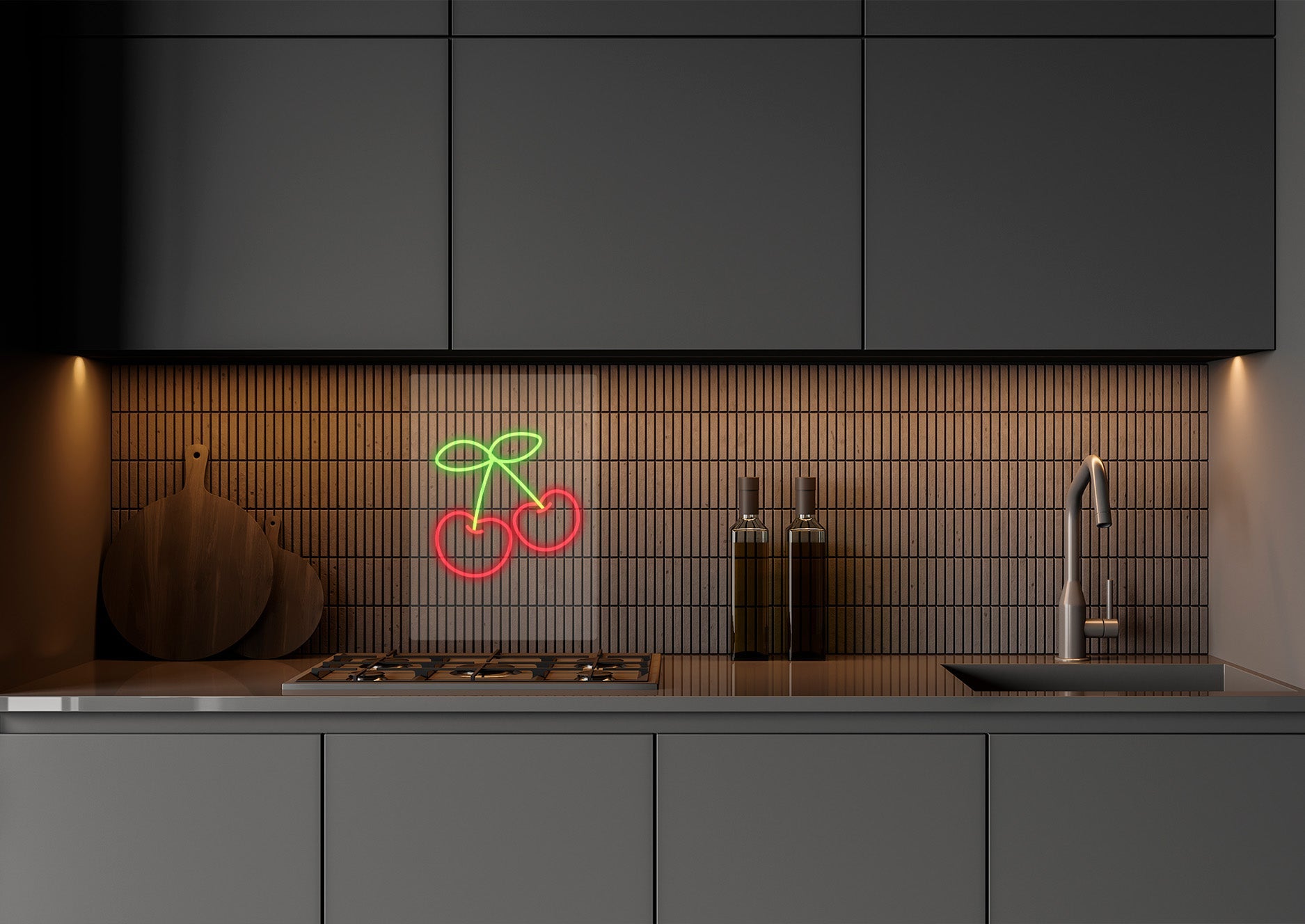 Las figuras led con un diseño como el de las cerezas son tendencia y se utilizan para decorar habitaciones juveniles en estilo gaming, para llamar la atención en los escaparates de las tiendas o para incluir un led de pared decorativo en la decoración de comercios.