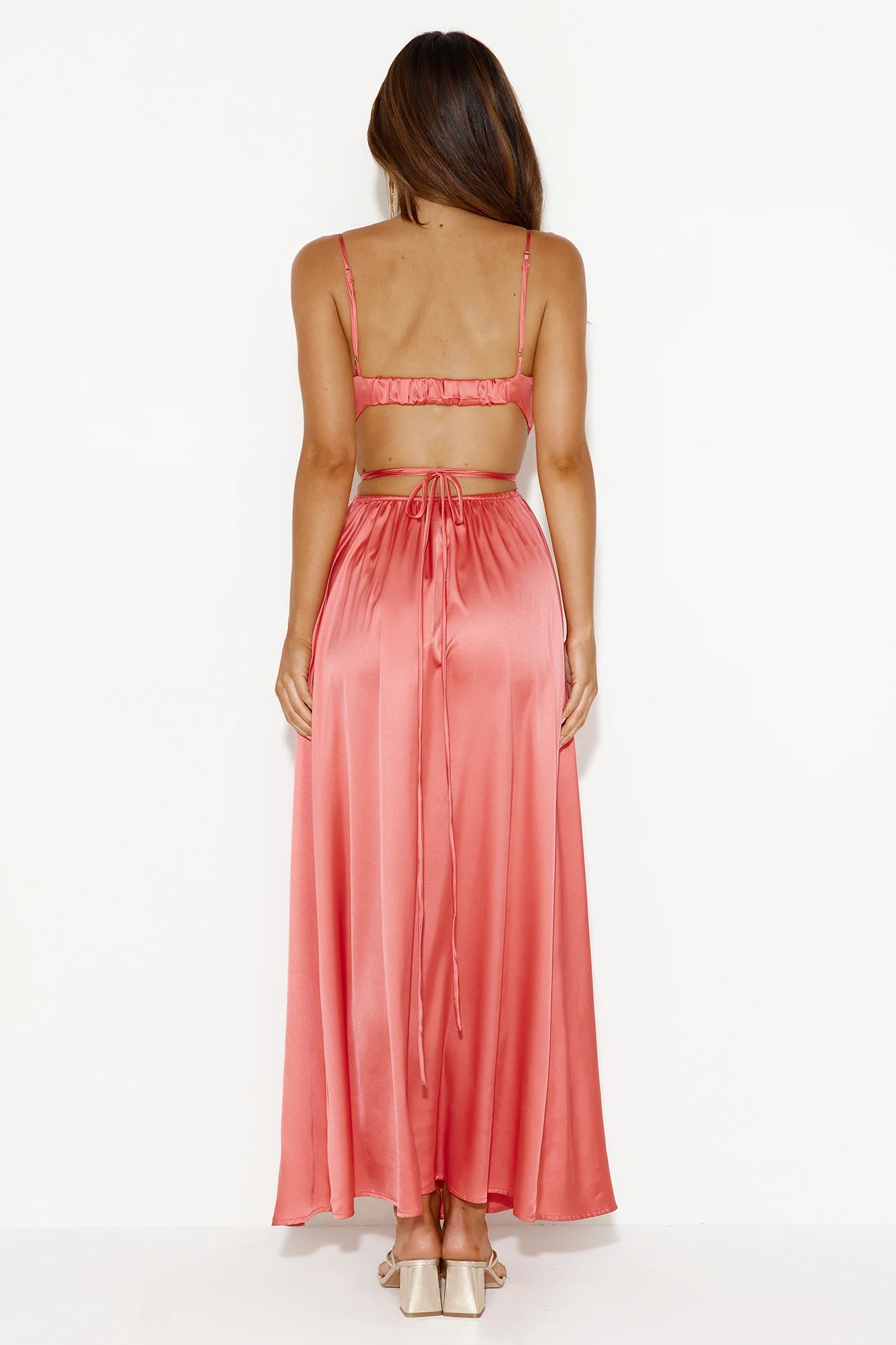 Bring your extravagant style to the party in the Nights In LA Satin Maxi Dress. Featuring a cutout to the back with a tie-up design. Style with heels and curls to be best dressed.