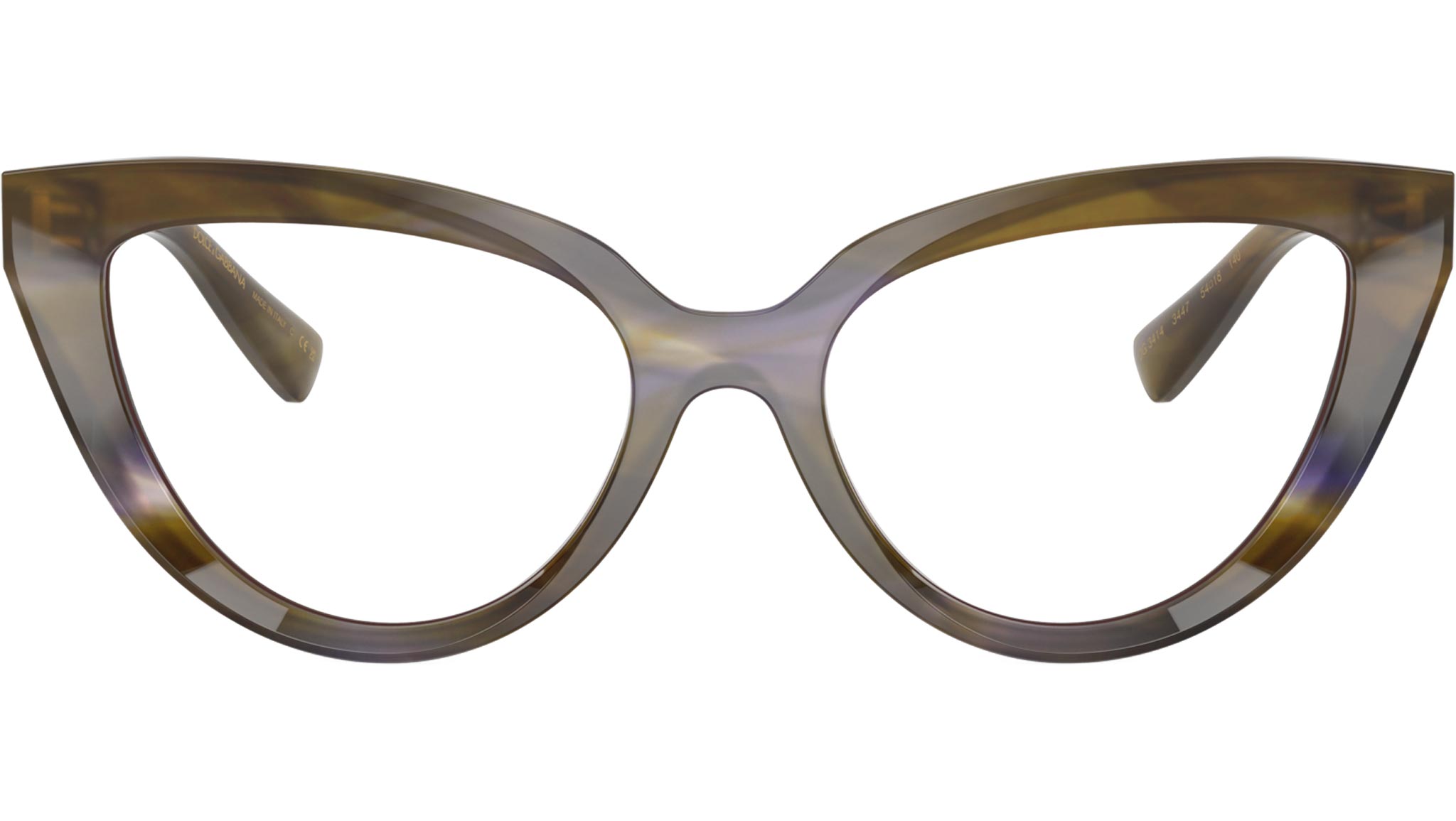 Occhiali da vista Dolce & Gabbana DG 3414 3447 donna con montatura cat eye in acetato oliva a righe e lenti demo. Fit universale. Linea: Dna. Codice modello: 0DG3414. Codice colore: 3447. Made in Italy. Rivenditore autorizzato Dolce & Gabbana online. Gli occhiali vengono consegnati con custodia e accessori originali e sono coperti dalla garanzia ufficiale di 12 mesi del produttore.