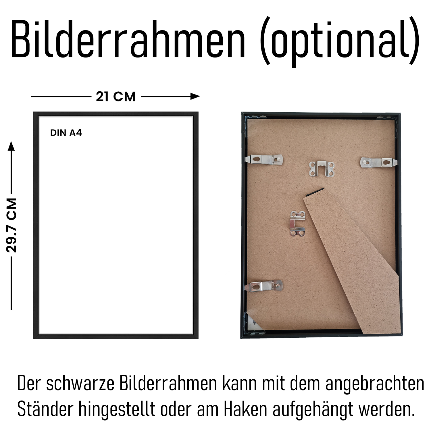 ✅ Optional mit Rahmen: Wähle die Variante mit schwarzem A4-Rahmen für ein sofort verschenkbares Highlight.