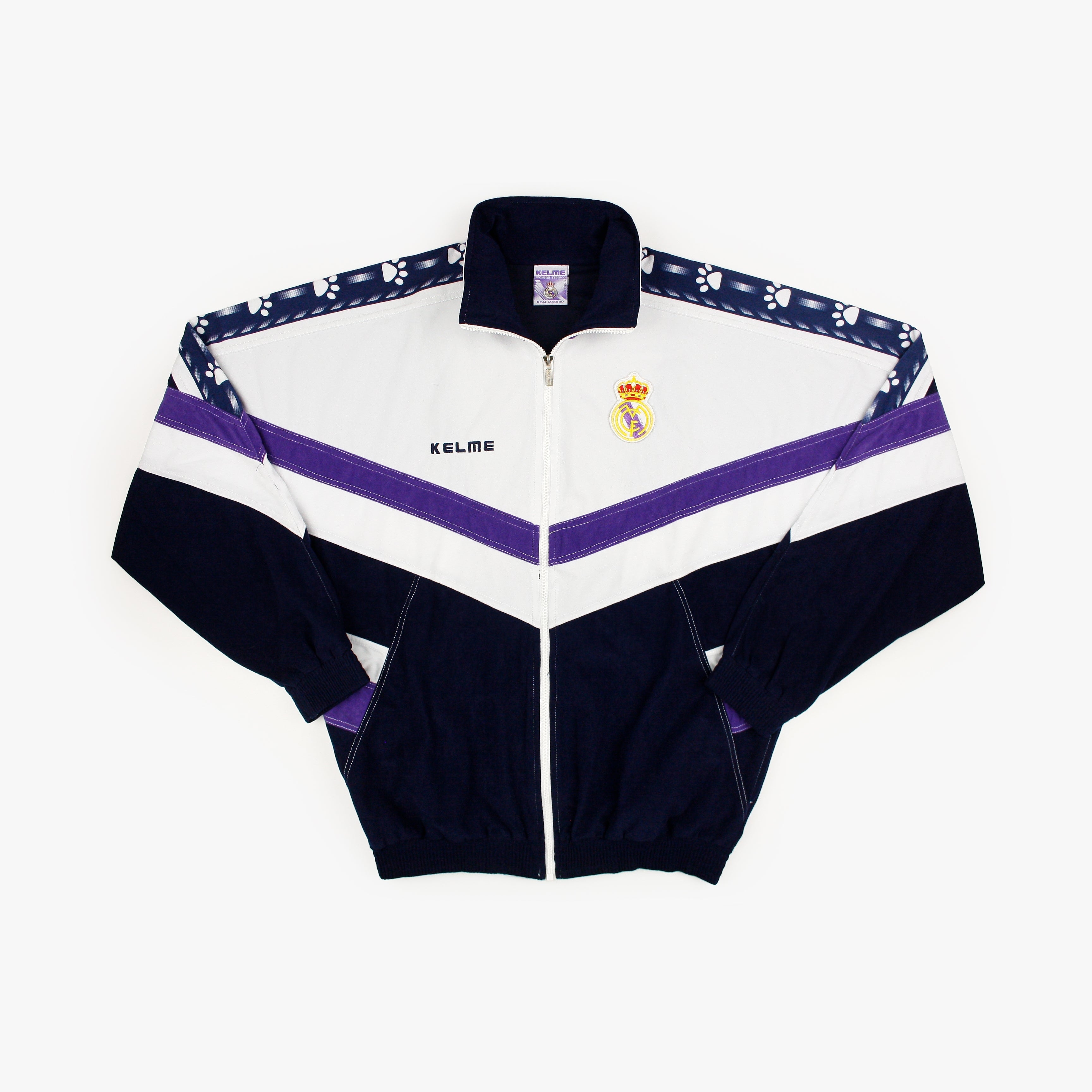La Vida. Está llena de preguntas sin respuestas: hay algo después de la muerte? De dónde venimos, a donde vamos? Que mierdas es estilo casual pero elegante? Una de estas eternas preguntas ya tiene respuesta. Así que cancela ya esa visita al Corte Inglés: esta chaqueta de chándal del Real Madrid del 96/97 es perfecto para las bodas de oro de tu abuelo. Para ser justos a Raúl, Suker, Roberto Carlos etc, la plantilla del Madrid en 96/97 era la materialización de casual pero elegante, deslizando el balón con gracia e inteligencia, lo que les llevaría a ganar La Liga luciendo este extraordinario modelo de entrenamiento de Kelme. Brillante en todos los sentidos, si no es lo suficientemente bueno para tu abuelo, deberías divorciarse de tu familia.