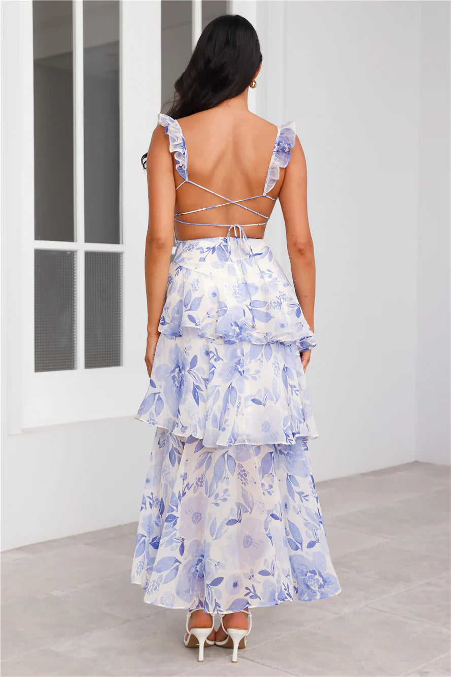 Your reason to shop is here, girl. The Refreshing Oasis Maxi Dress features a tie-up design and a gorgeous tiered frill skirt. Style with heels for the best look at the party.