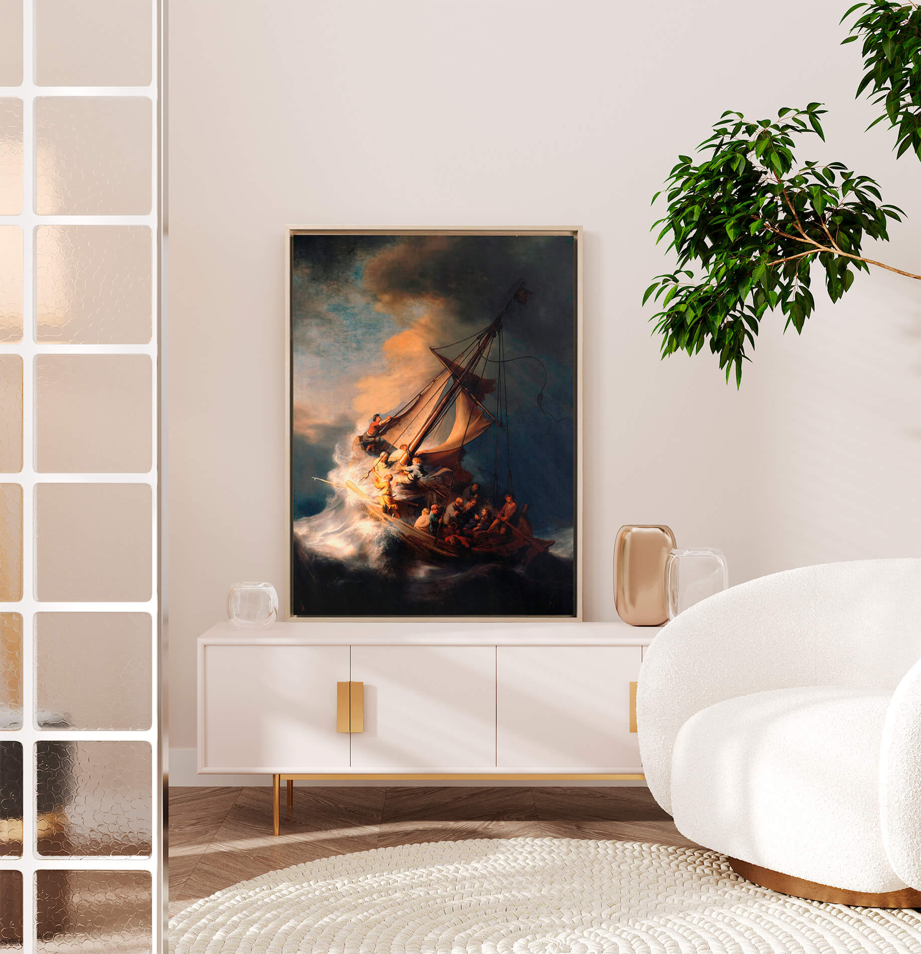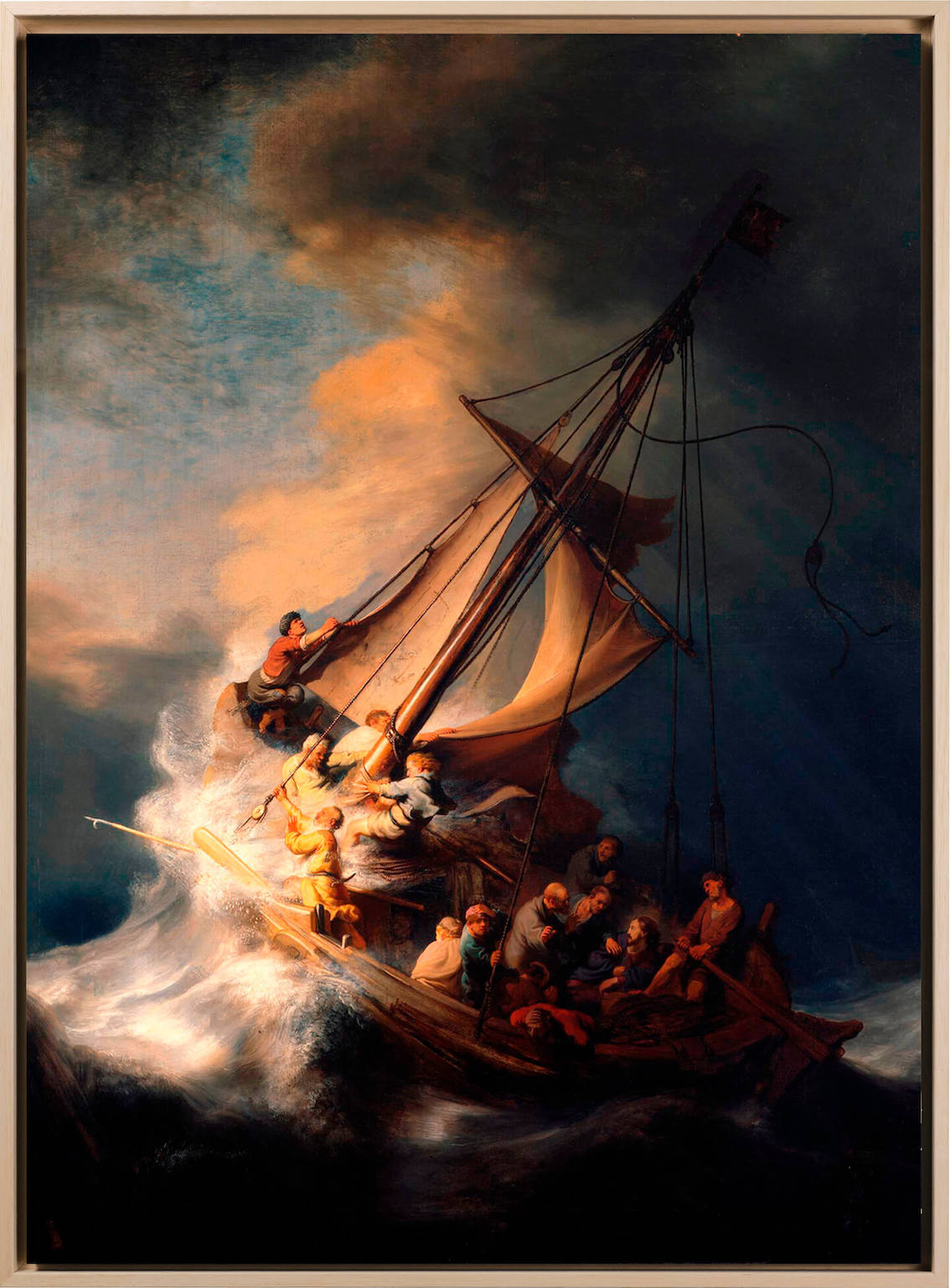 Il nostro quadro materico, ispirato al capolavoro di Rembrandt "Cristo nella tempesta sul lago di Galilea", è realizzato con tecnica di stampa UV LED 2.5D per risaltare il dipinto, offrendo un effetto unico. La stampa UV LED ci permette di avere colori vibranti e duraturi su un supporto rigido di alta qualità. Sembra di avere un vero e proprio dipinto in rilievo Per ogni quadro vengono inclusi due ganci per poterlo appendere.