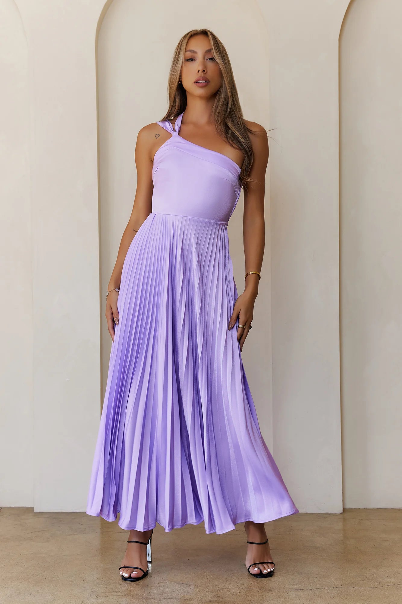 Attend your fancy events in the Ros�� Reverie One Shoulder Satin Maxi Dress. It features a satin silhouette, a one-shoulder design that ties to the back and a pleated design. Style with heels!