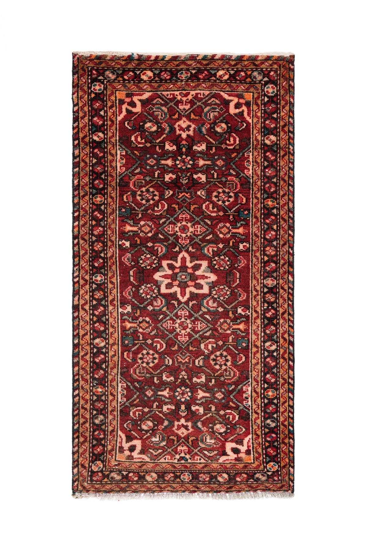 This richly detailed Hamadan Persian wool rug features a symmetrical all-over floral lattice design, centred by a stylised rosette medallion and surrounded by layers of ornate borders in shades of deep crimson, ivory, forest green, and midnight blue. Hand-knotted with high-quality wool by artisans from the Hamadan region of western Iran, the rug offers a thick, durable pile and a warm colour palette that brings timeless elegance to entryways, corridors, or study spaces. The intricate motifs and traditional craftsmanship reflect the centuries-old weaving heritage of Hamadan.Ā