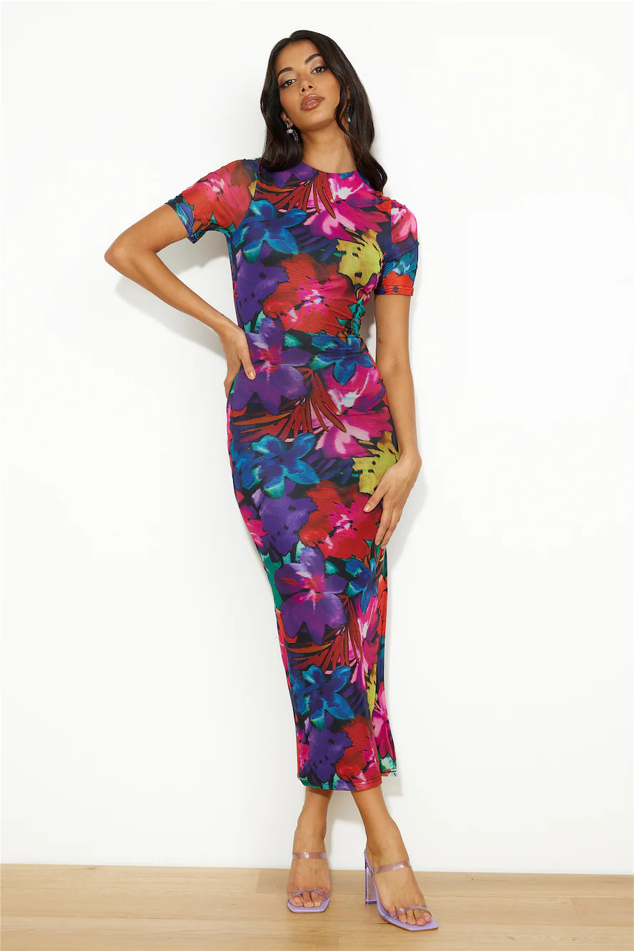 Take on this season's latest trend in style with the RUNAWAY Romance Midi Mesh Dress. Featuring short sleeves and a side leg split.? Style with heels for a 'fit we love.
