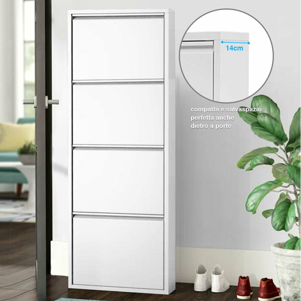 La nuova scarpiera slim è realizzata interamente in metallo di altissima qualità verniciata a fuoco in un bellissimo colore bianco.