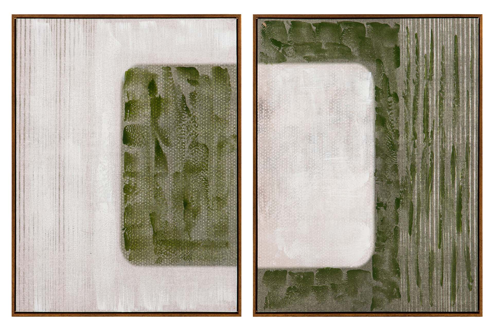 Este set incluye dos cuadros de 60x4x80 cm, pintados a mano en un 80%. Cada pieza destaca por su delicadeza y detalle artesanal, aportando un toque de elegancia y sofisticación que realza cualquier ambiente con un estilo refinado y contemporáneo.