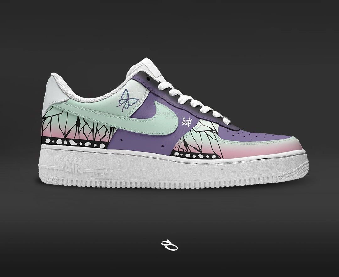 Introducing the Shinobu Kocho Demon Slayer Air Force 1 - a unique and stylish custom design of the classic Nike Air Force 1. With intricate details inspired by the popular anime series, this shoe is sure to make a statement. Enjoy the comfort and functionality of Nike while proudly displaying Shinobu Kocho Demon Slayer.