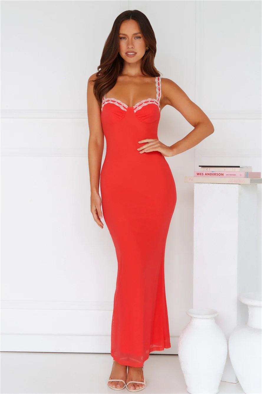 We're in love with this style and we think you'll be too. The Showcasing Statement Mesh Maxi Dress features a stretchy mesh silhouette and a white lace trim to the neckline and shoulder straps. Style with heels and curls!