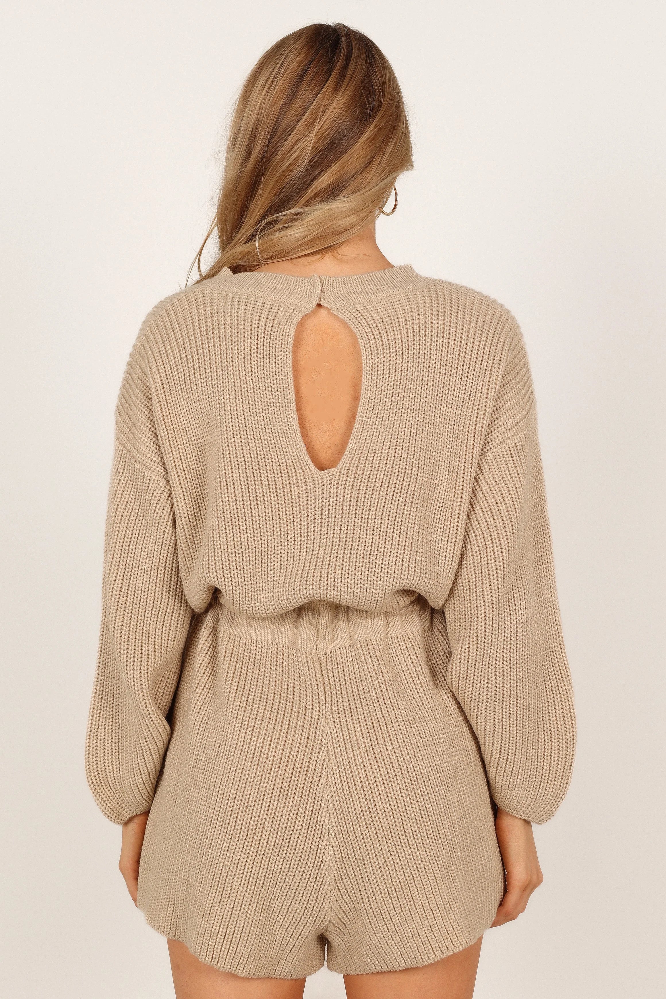 Let your fashion statement be heard in this irresistible sweater romper! With a round neckline and long sleeves, this romper provides plenty of coverage while still looking chic. The tie close drawstring waist offers an adjustable fit so you can always feel comfortable.