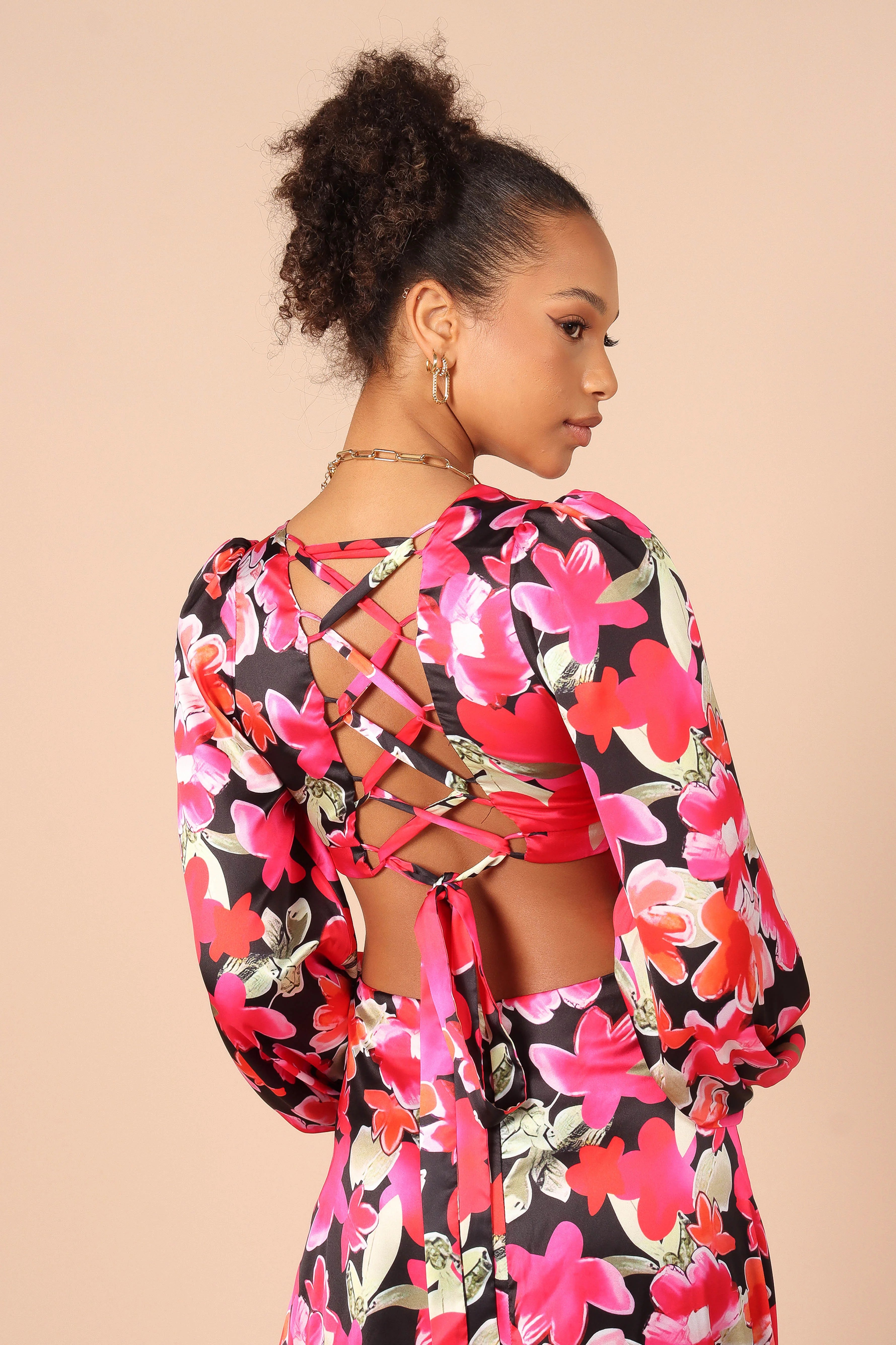 Step into summertime with this floral dress! With a v-neckline and long sleeves, it's perfect for any special occasion. The elasticised cuffs and side cut out detail add an extra bit of sass to your look, while the back invisible zip and hook and eye clasp keep everything secure.