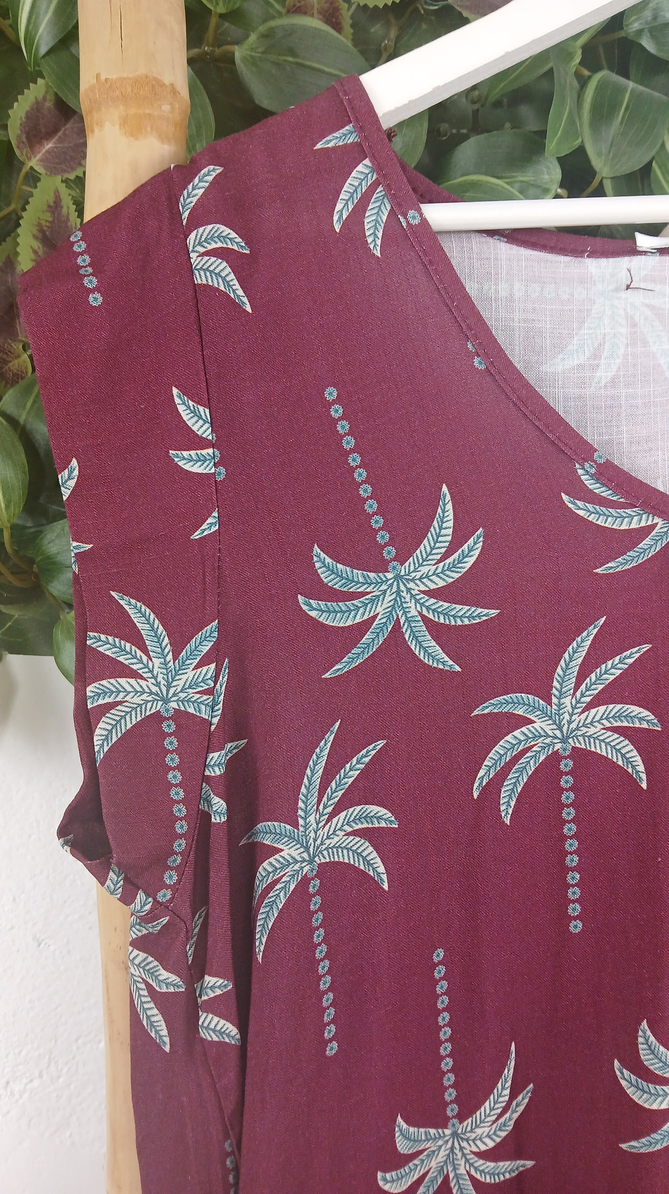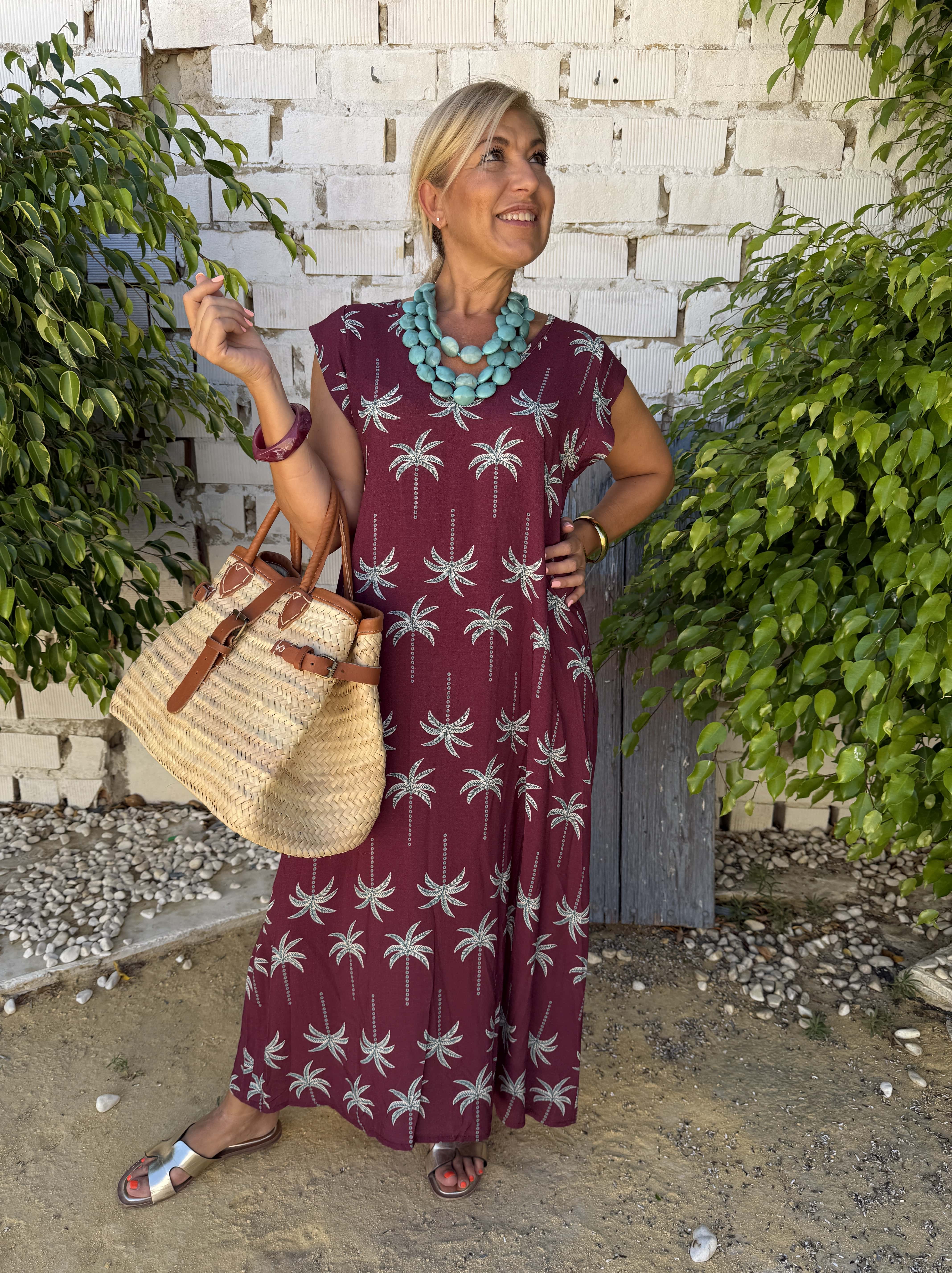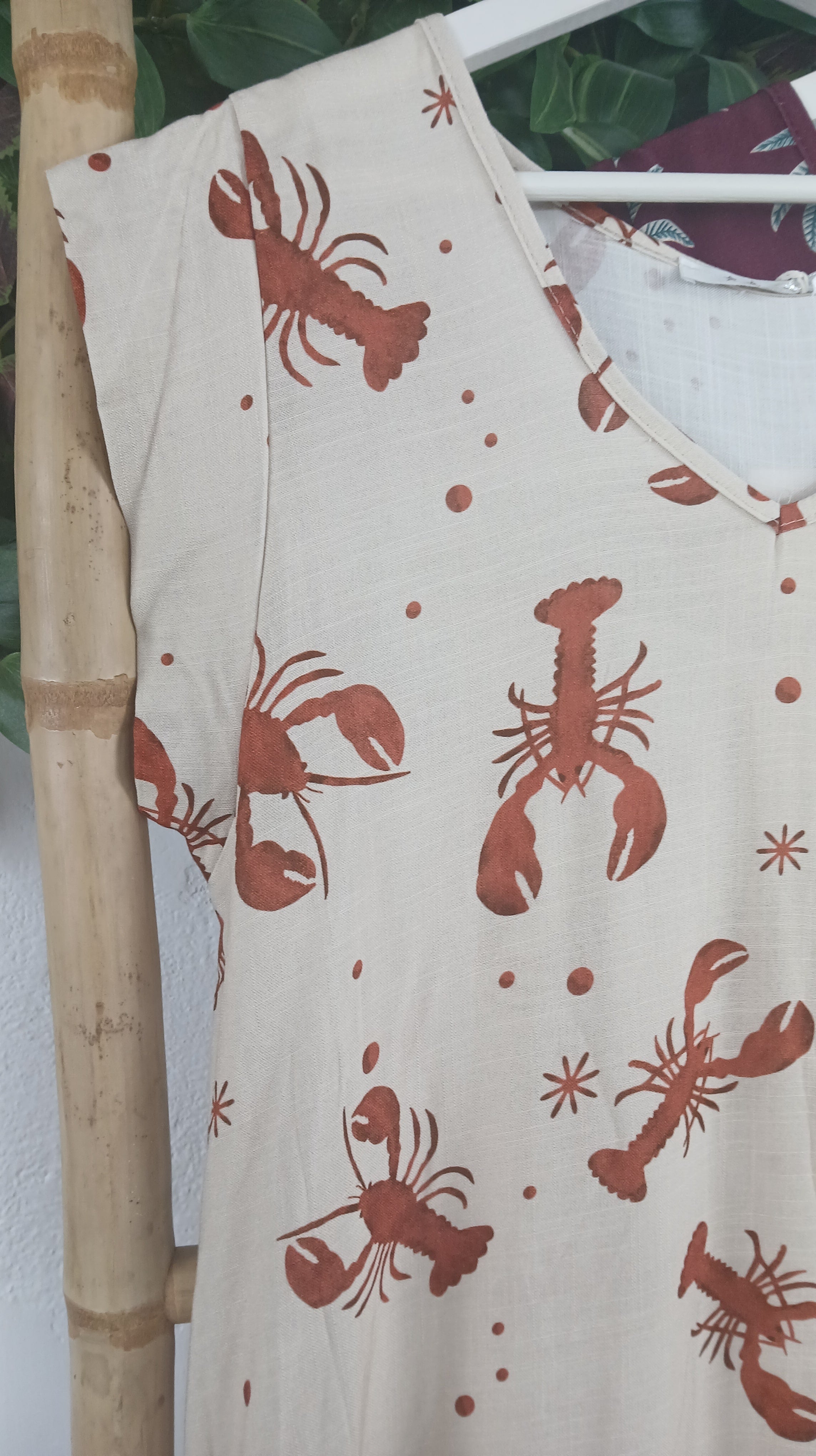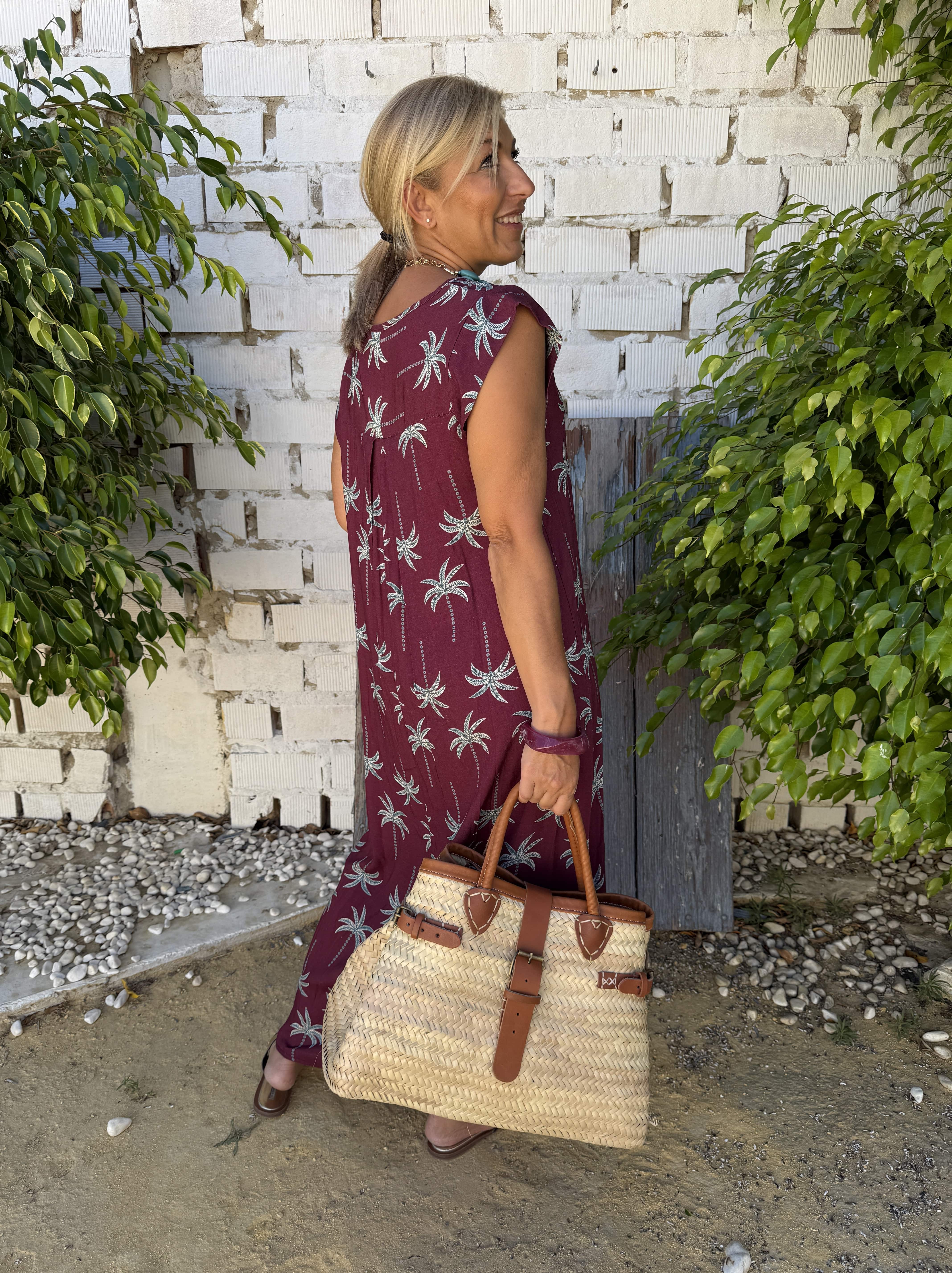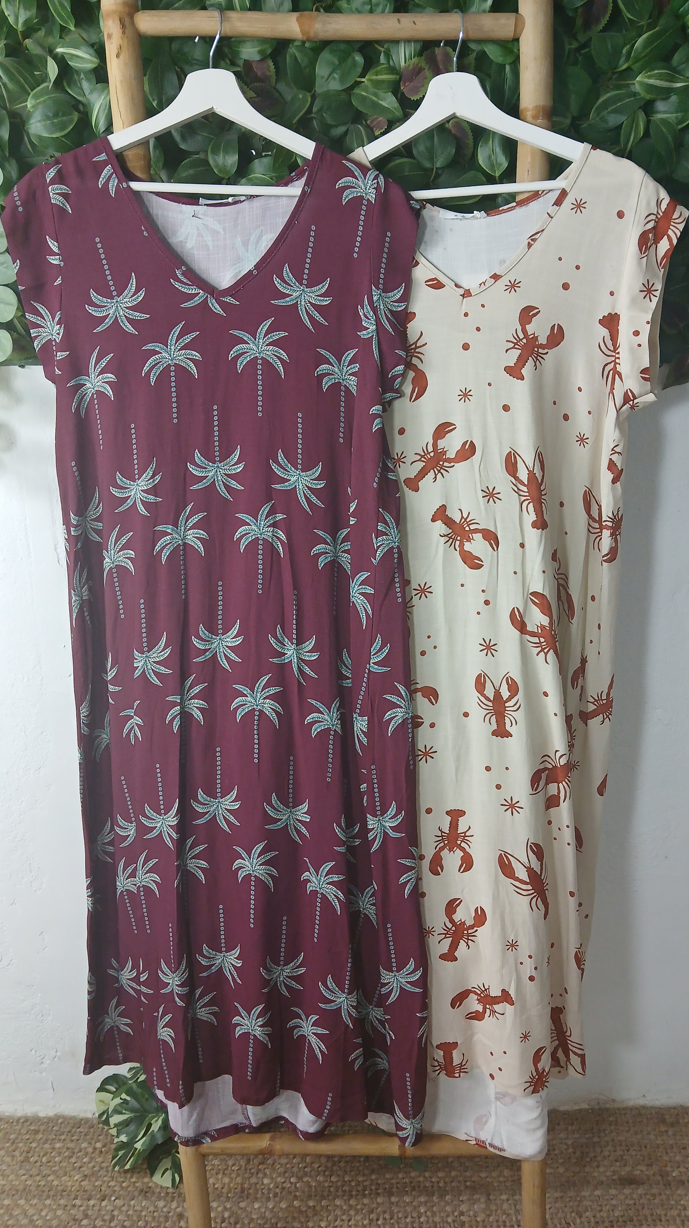 Vestido de mujer de manga corta con escote en forma de pico y tabla en la zona de la espalda.