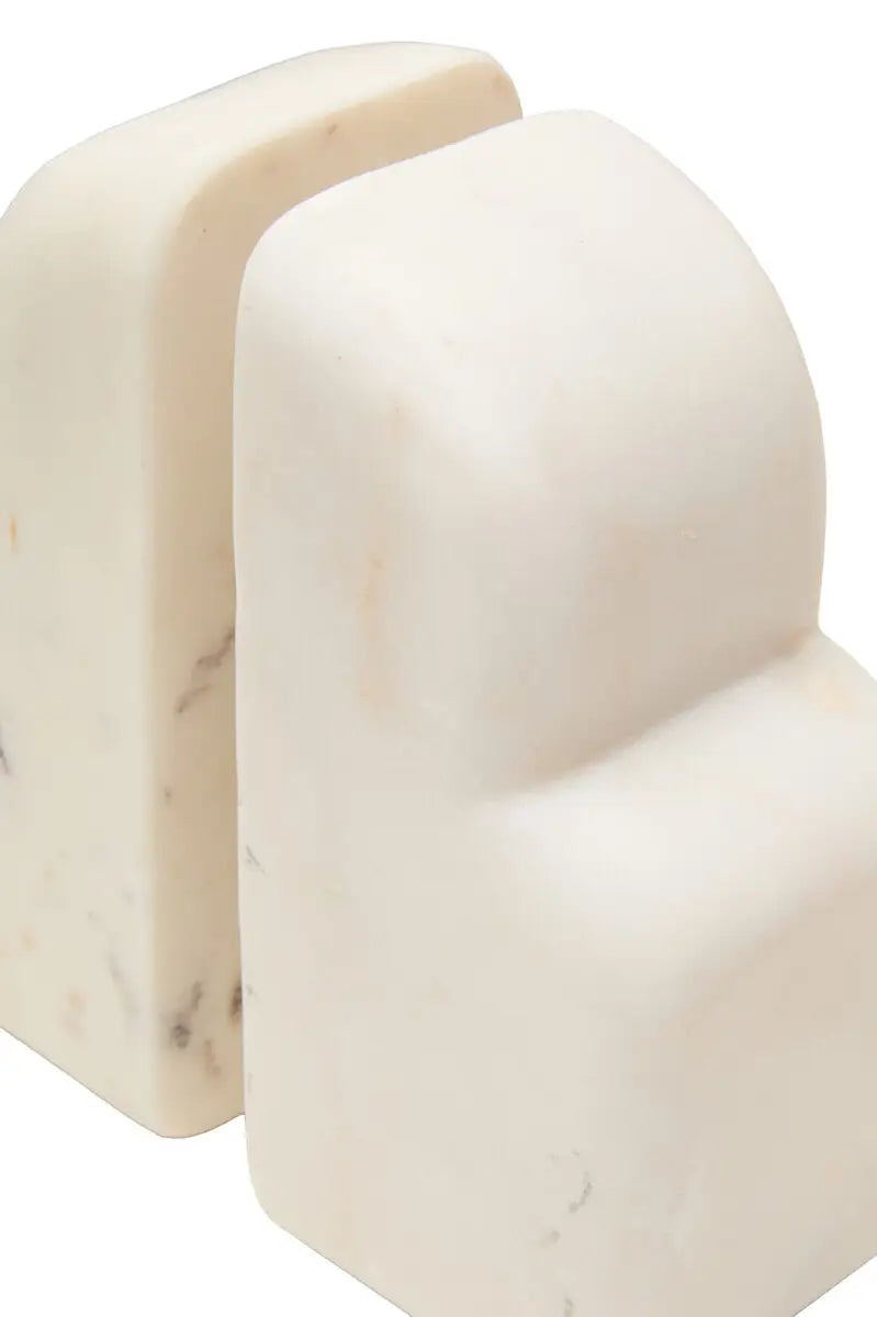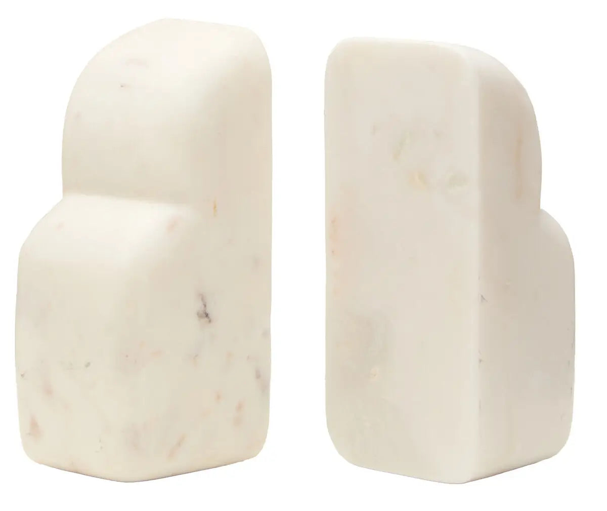 HEIGHT: 18CM WIDTH: 15CM (PER HALF) DEPTH: 8CM  Weight: 5.6KG Beautiful pair of modern white marble bookends. This stunning home decoration will add a sense of luxury to your media wall, windowsill or console table.