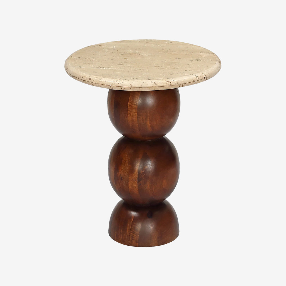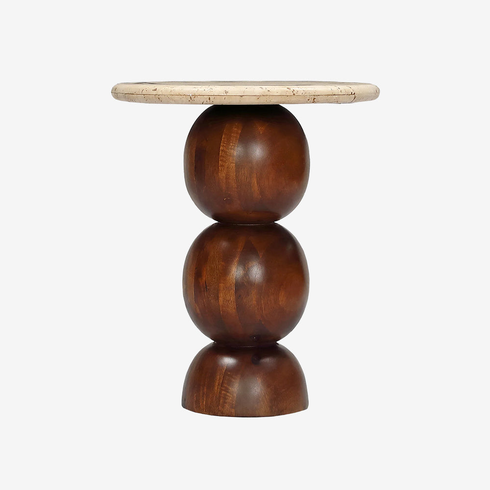 Bring sculptural elegance to your space with the Zira Travertine Top End Table, a stunning fusion of organic materials and artistic design. Handcrafted from rich solid mango wood, the base features a bold, stacked sphere silhouette that adds a playful yet refined touch. Topped with a smooth, natural travertine stone surface, this table exudes sophistication and timeless charm. Ideal as a side table or decorative accent, the Zira End Table makes a stylish statement in both modern and eclectic interiors, offering a perfect balance of texture, form, and functionality.